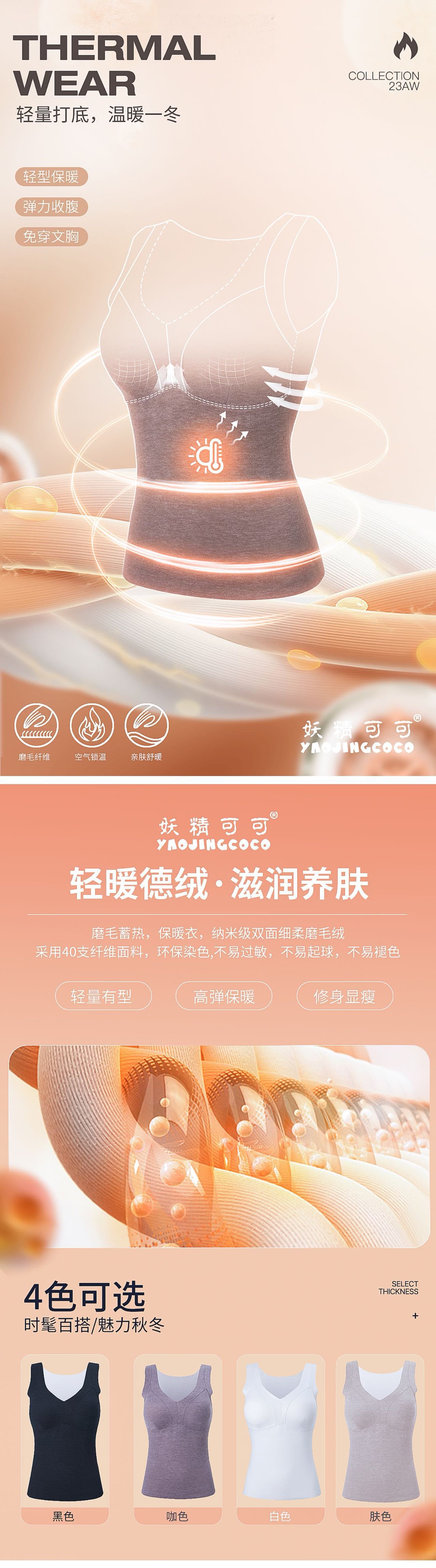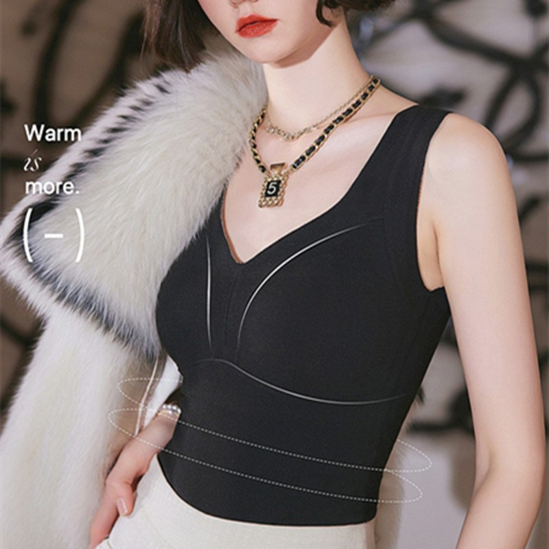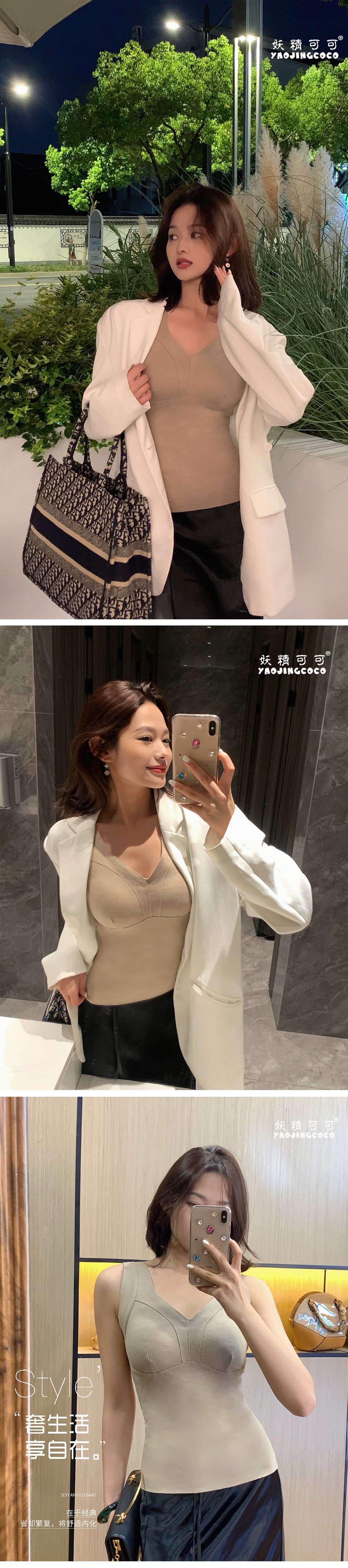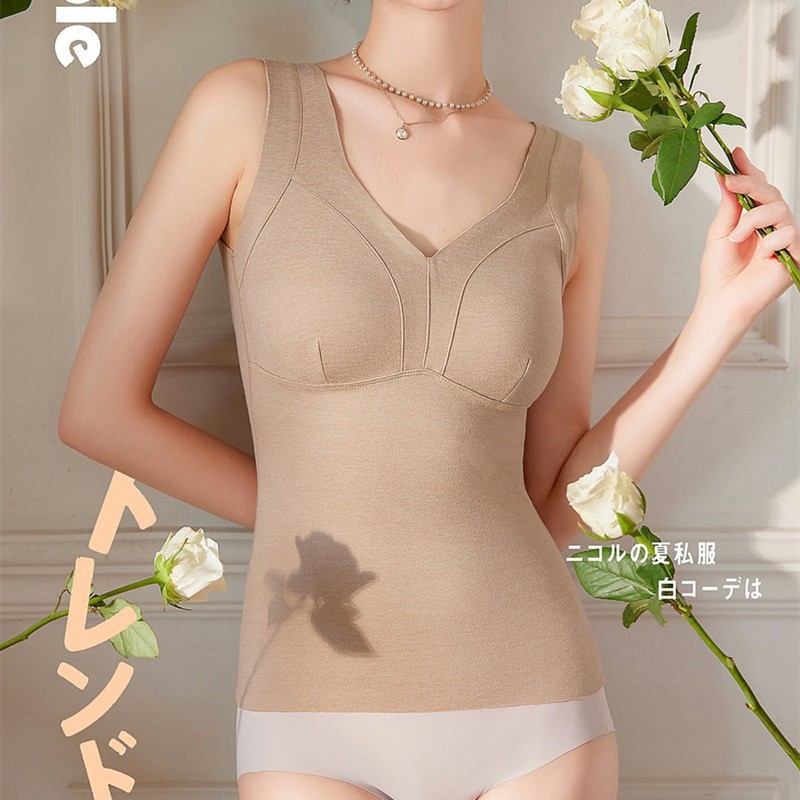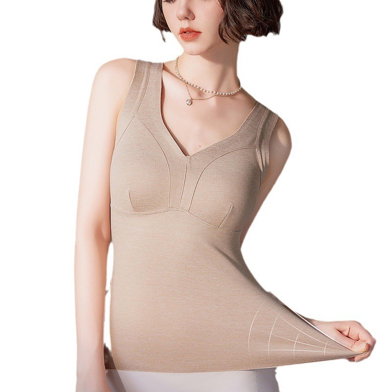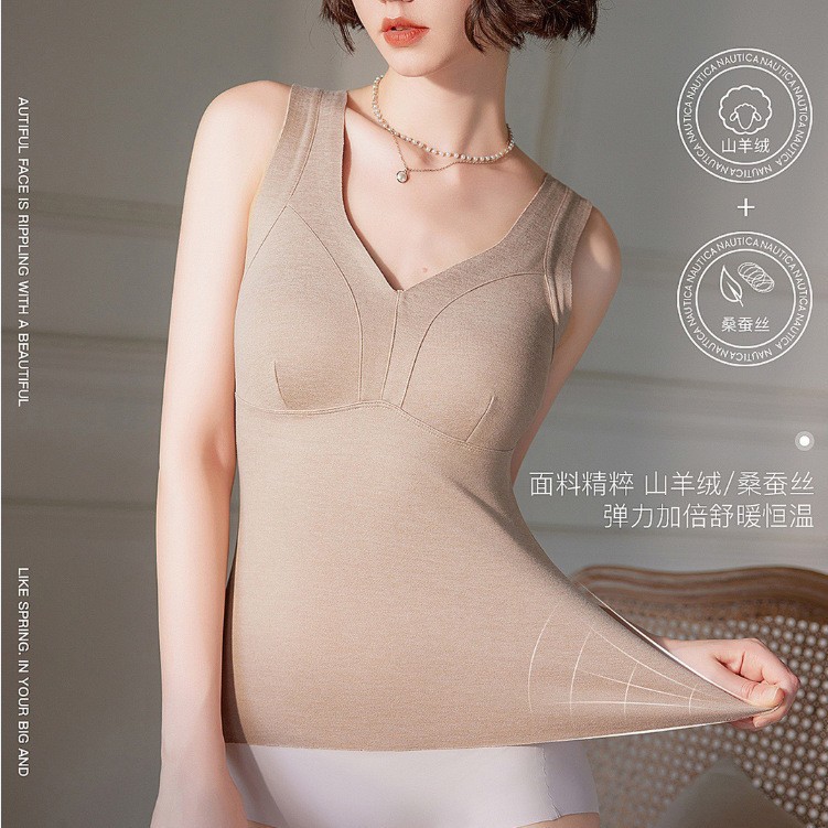 秋冬新款妖精可可蚕丝羊绒保暖内衣女打底保暖背心带胸垫保暖马甲