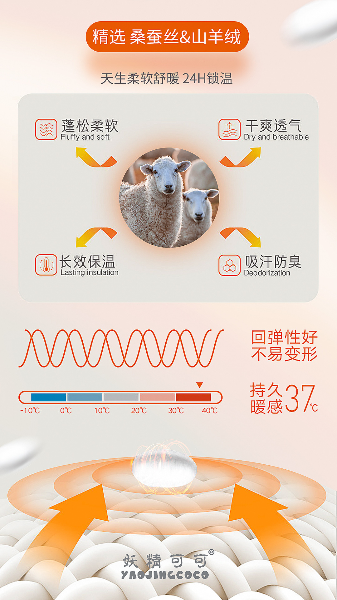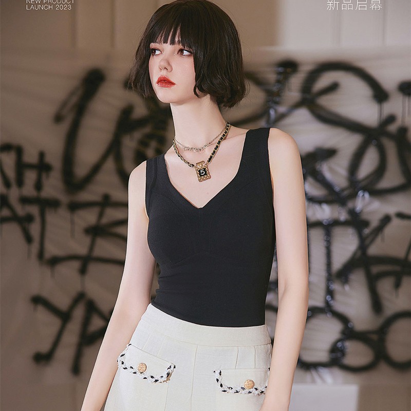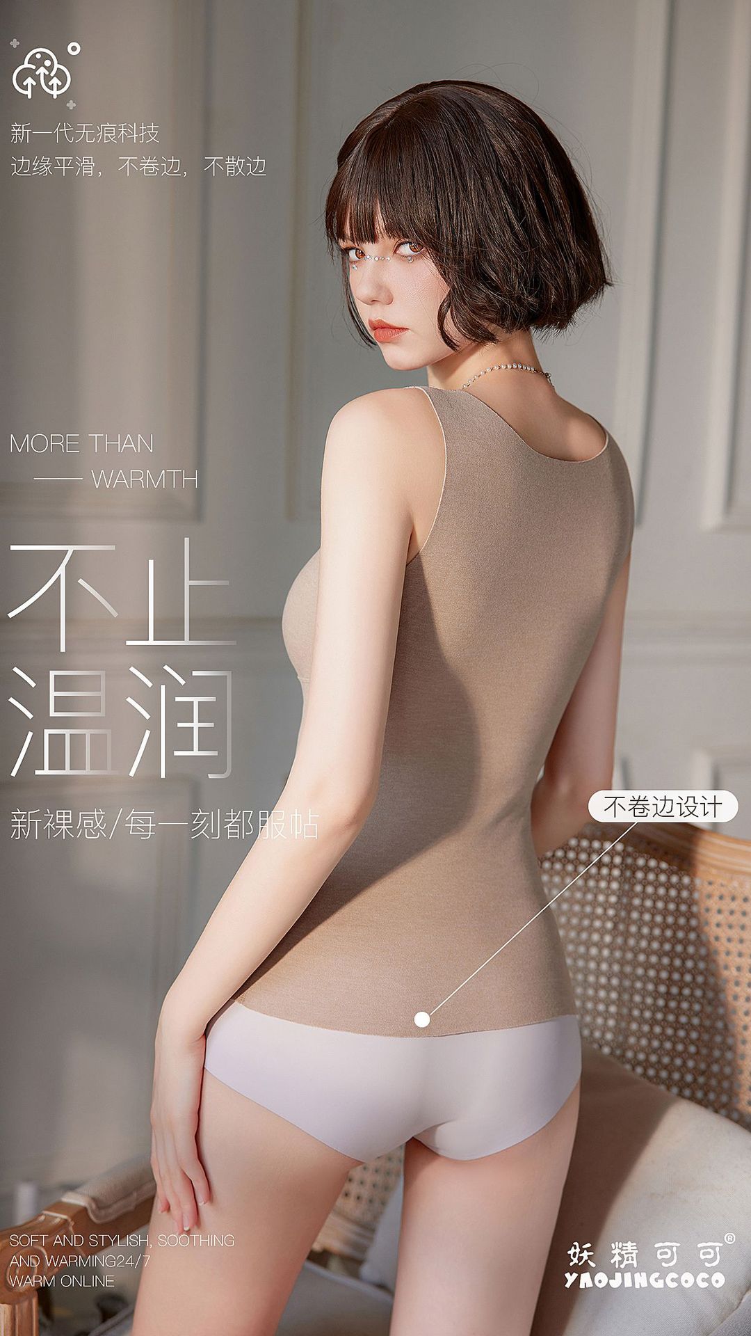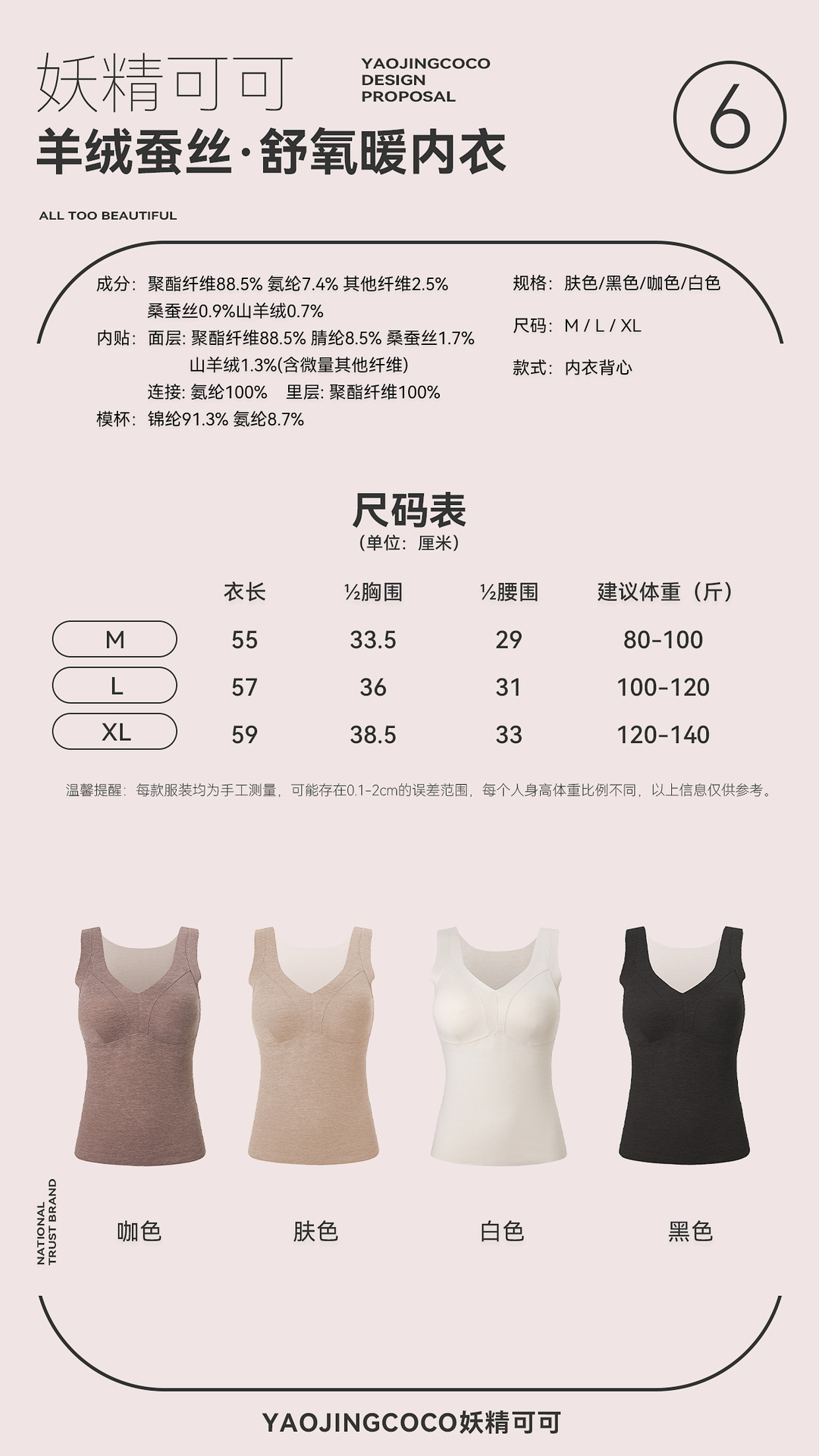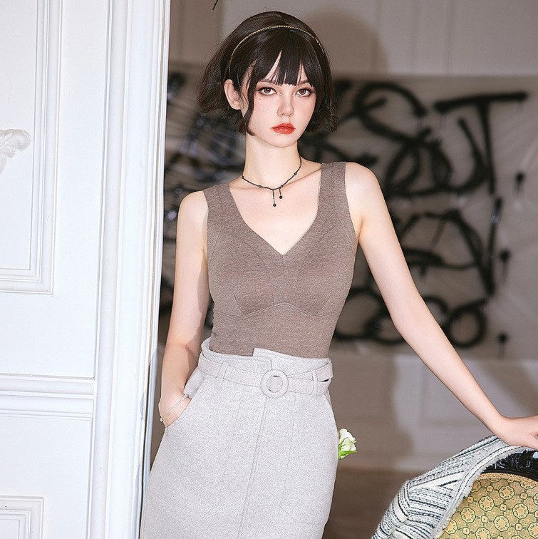 秋冬新款妖精可可蚕丝羊绒保暖内衣女打底保暖背心带胸垫保暖马甲