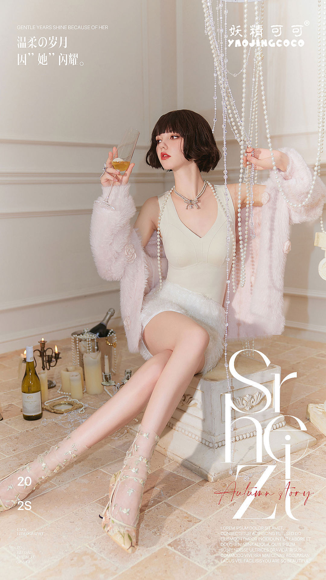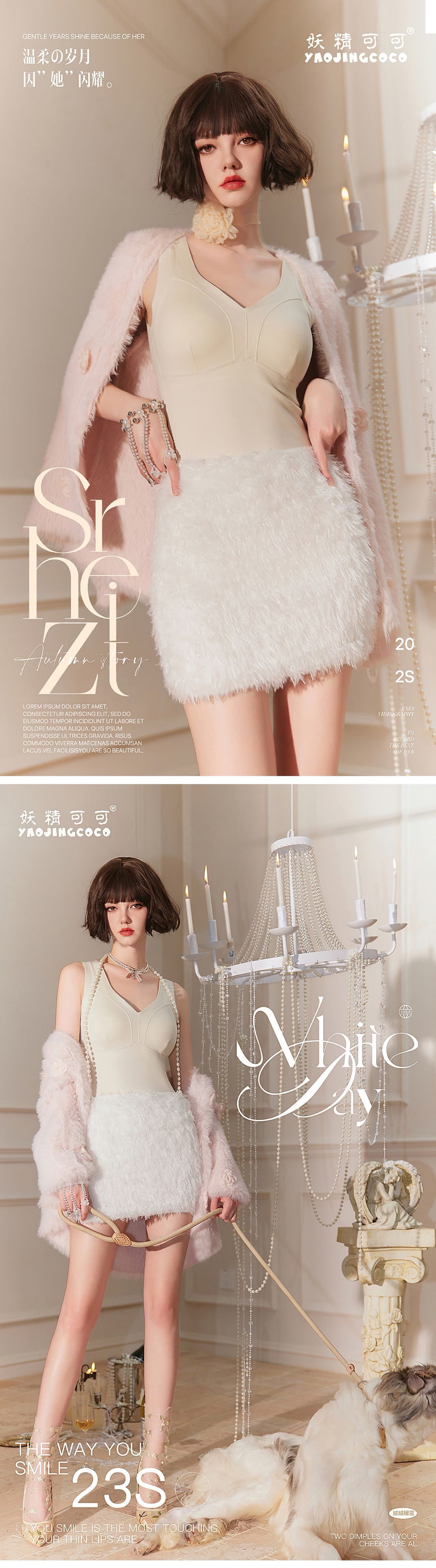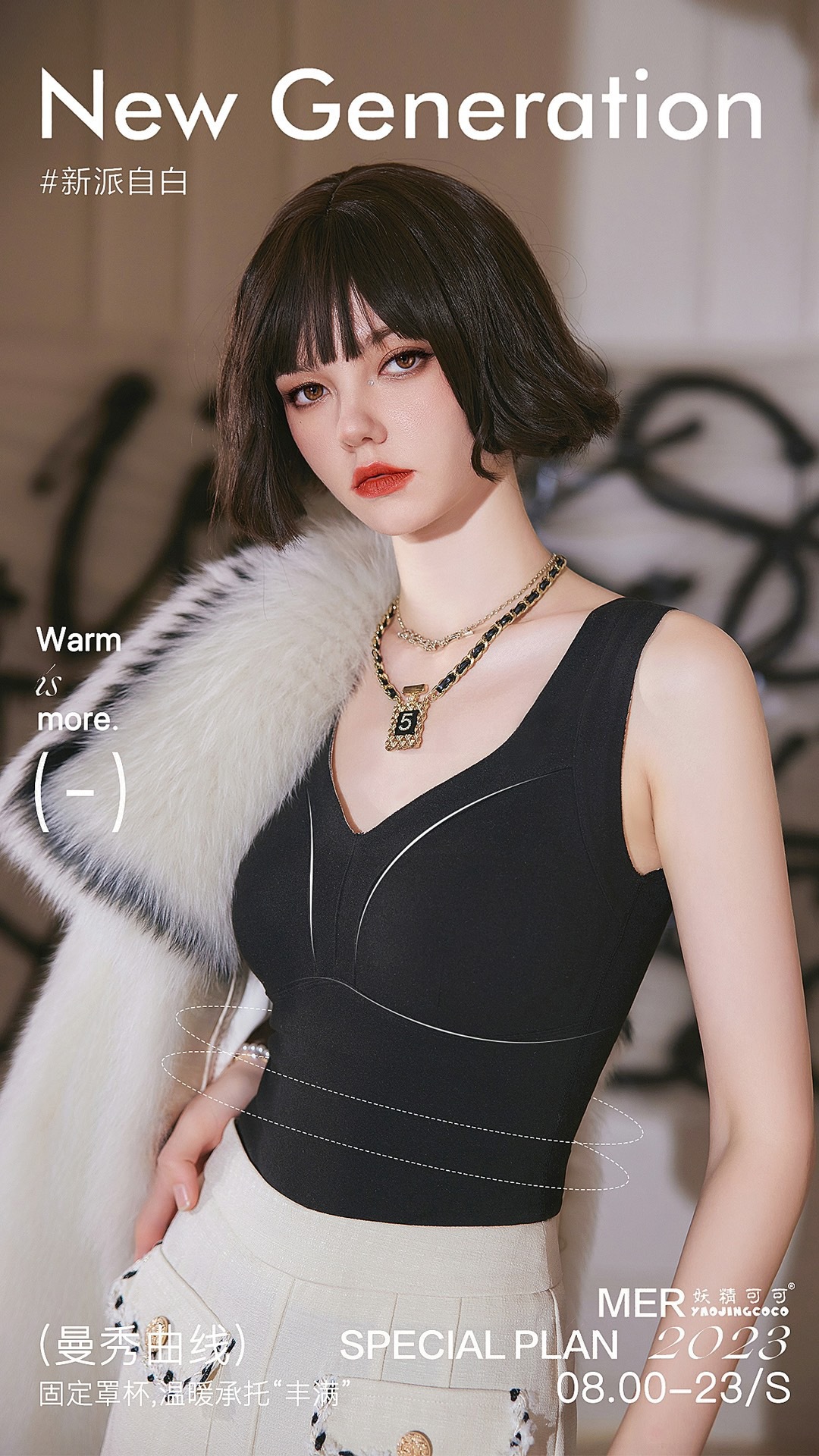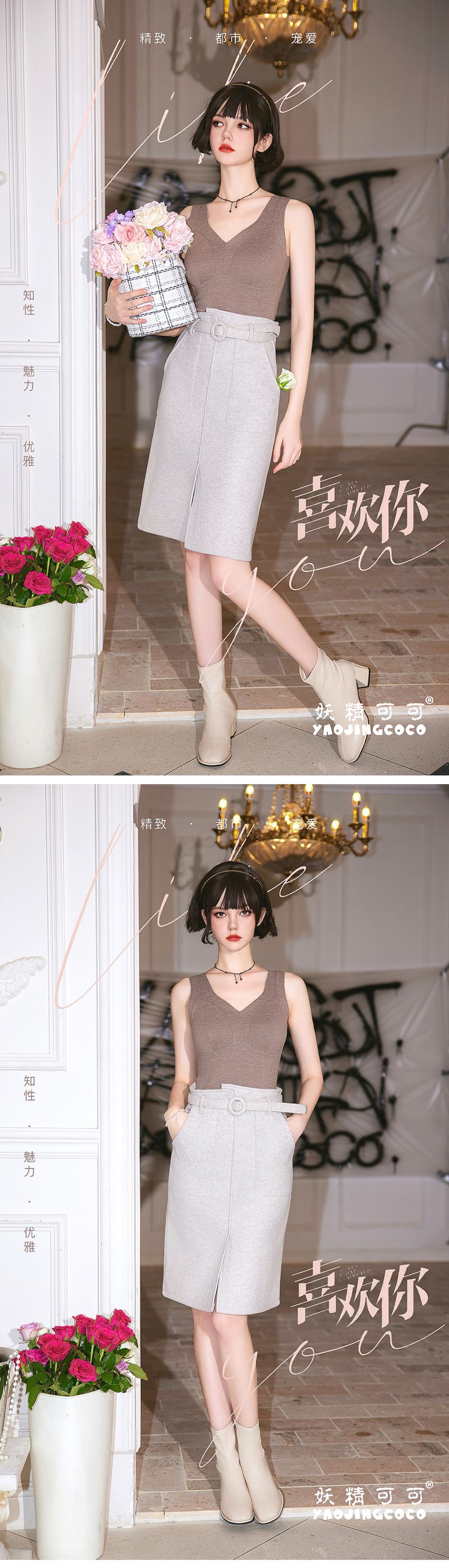 秋冬新款妖精可可蚕丝羊绒保暖内衣女打底保暖背心带胸垫保暖马甲