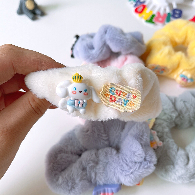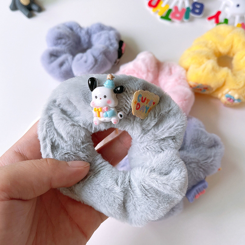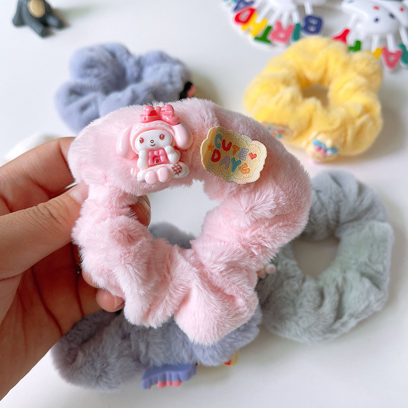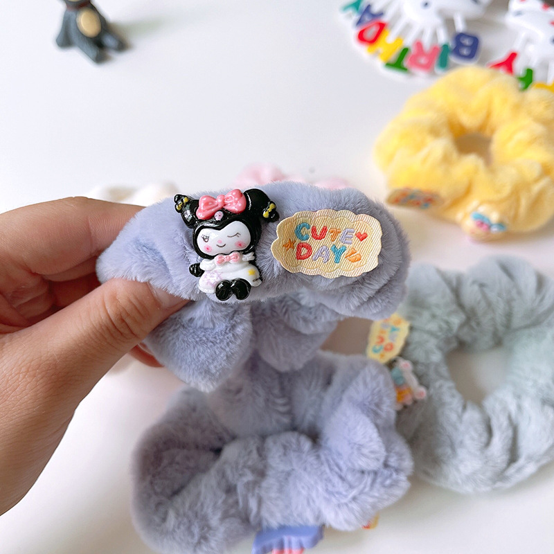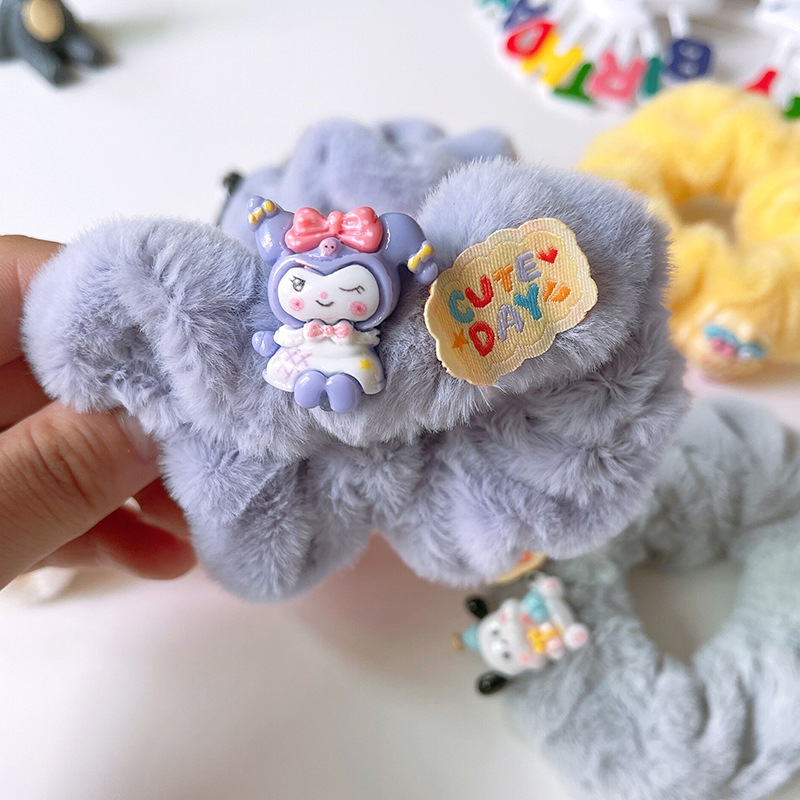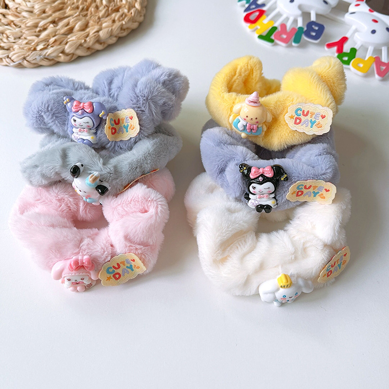 新款可爱三丽鸥系列毛绒大肠圈库洛米发圈甜美粉白头绳送闺蜜礼物