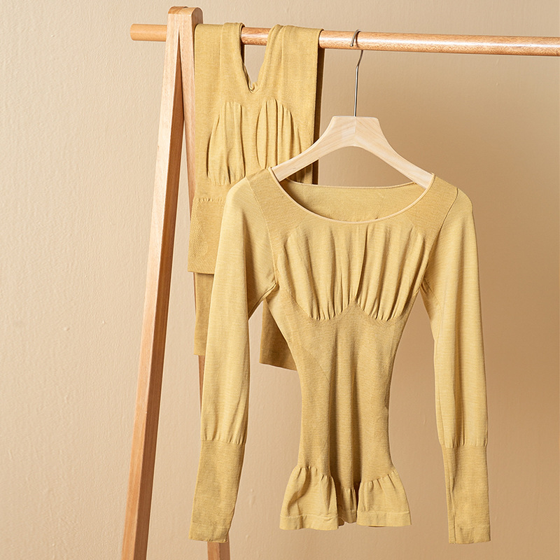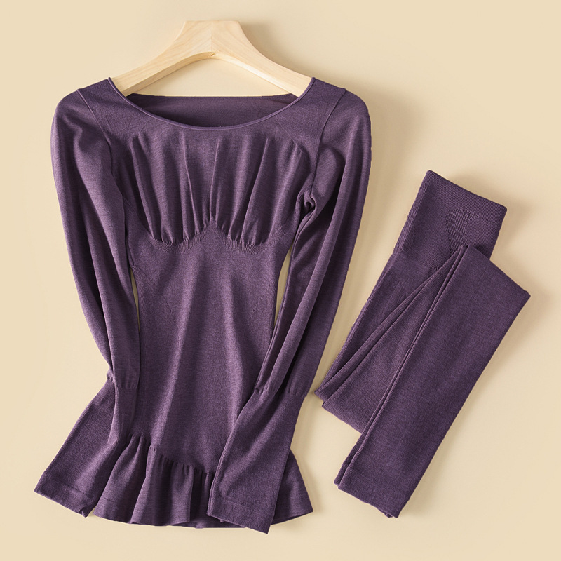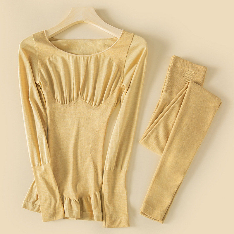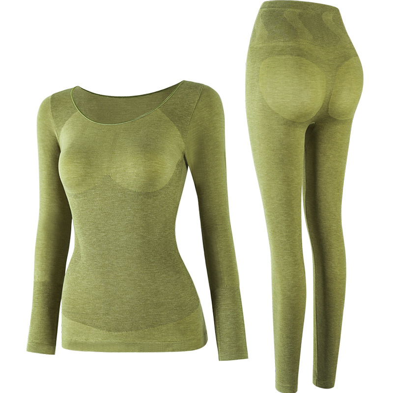 秋冬保暖内衣女薄款紧身发热保暖衣无痕圆领塑身秋衣秋裤套装批发