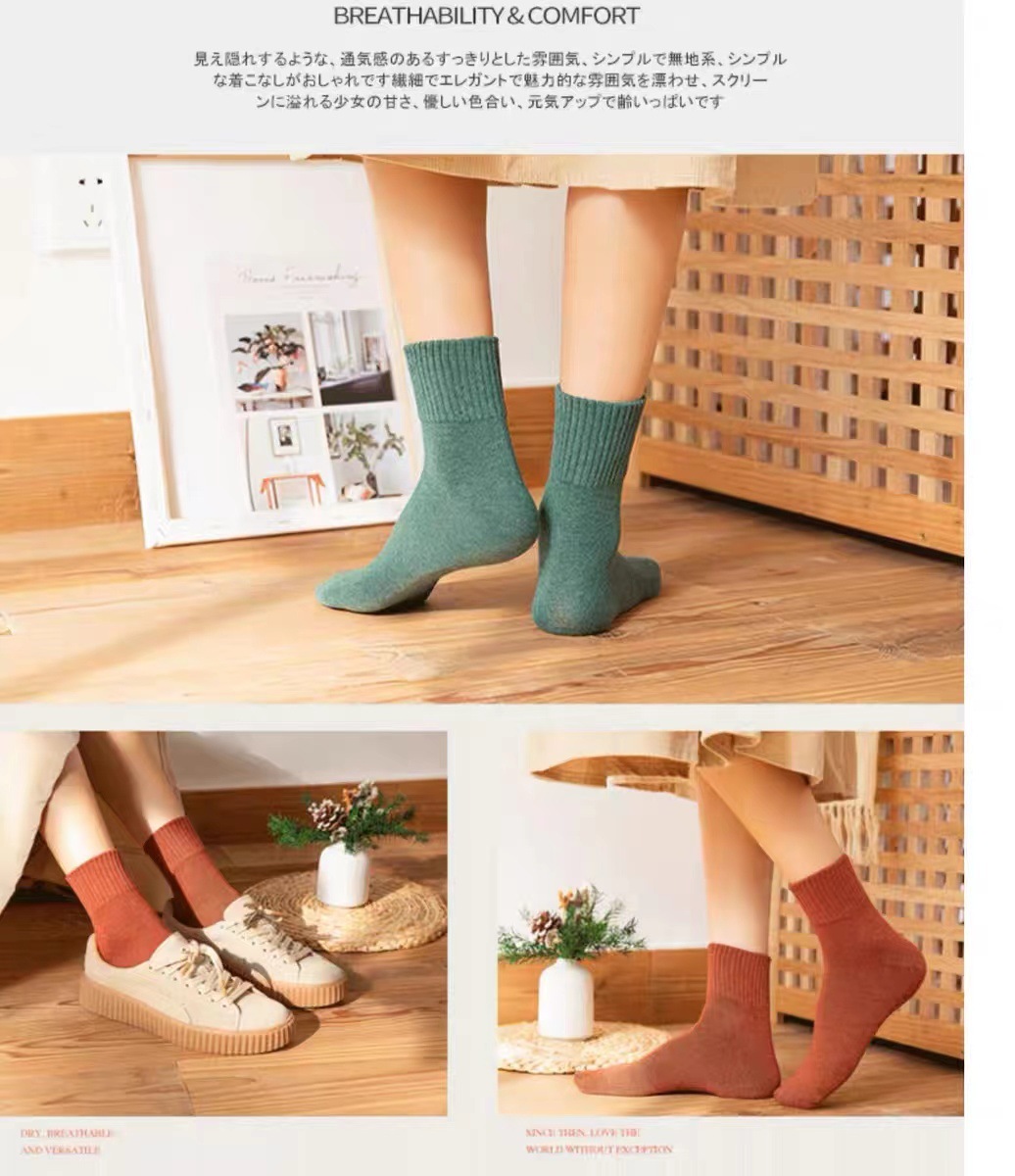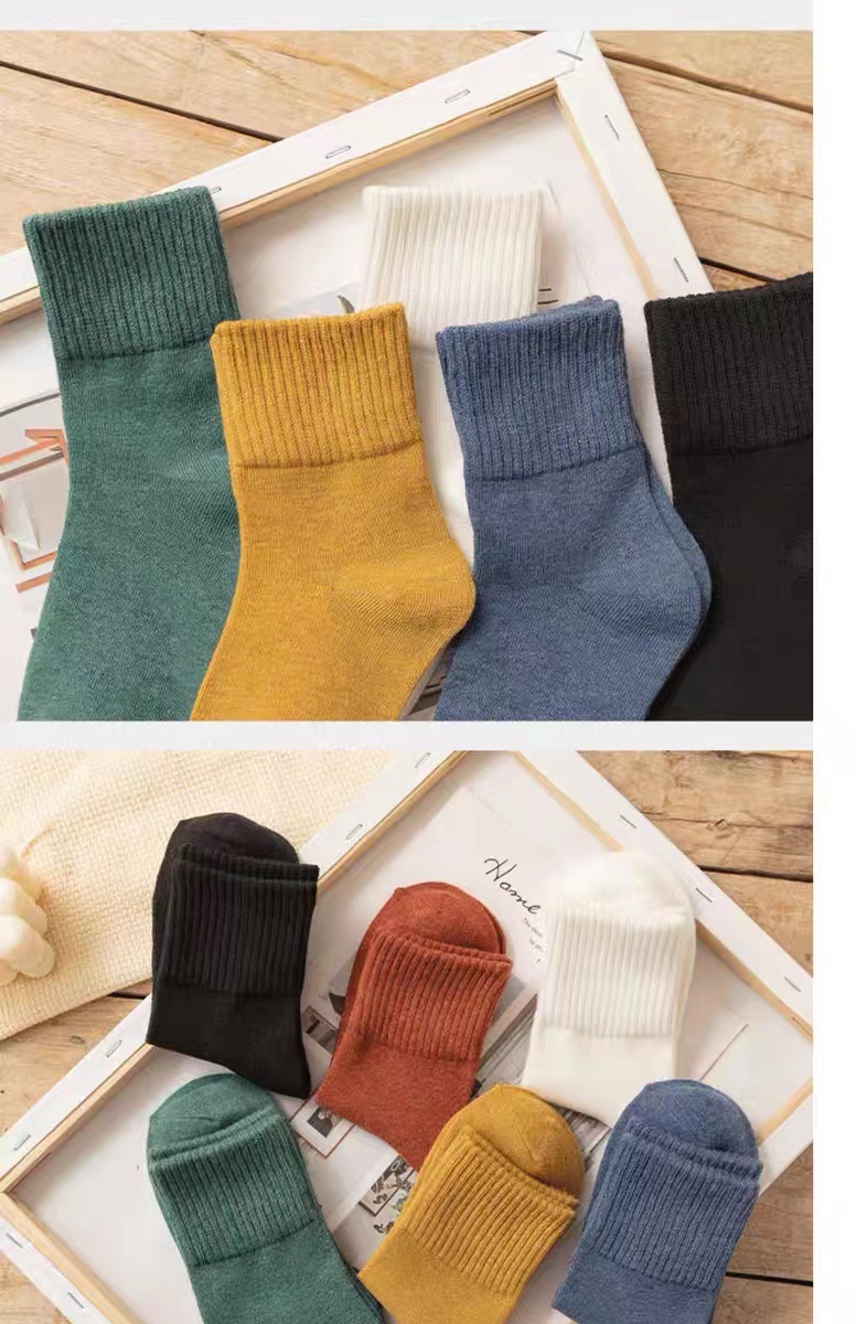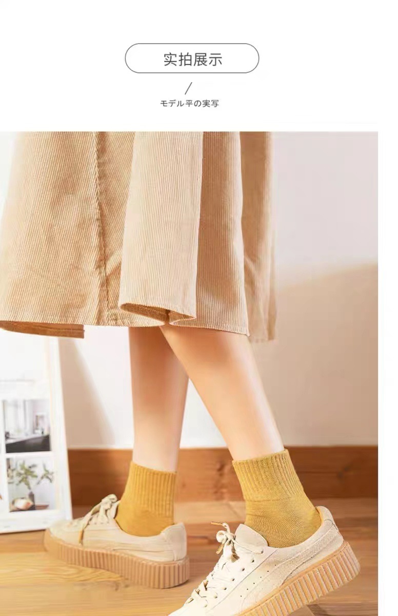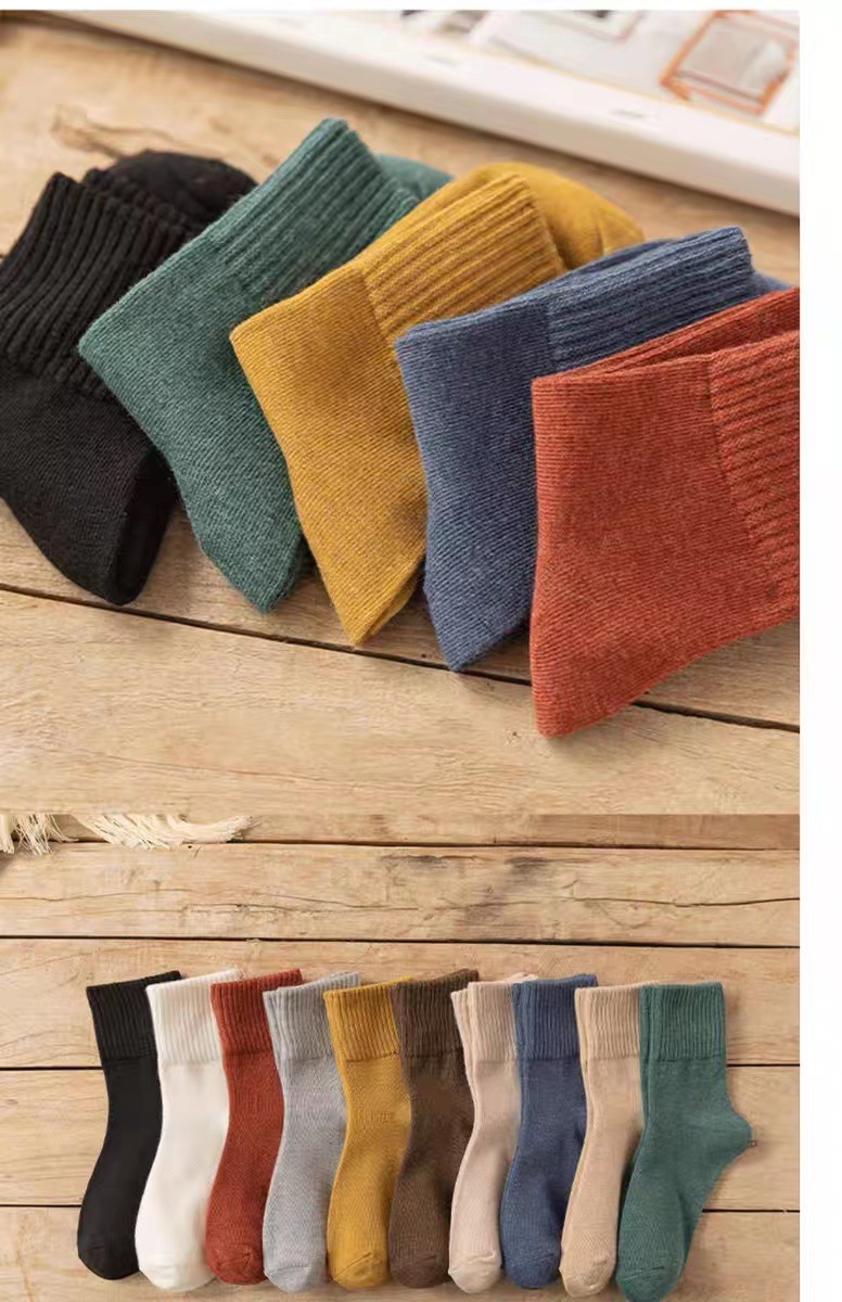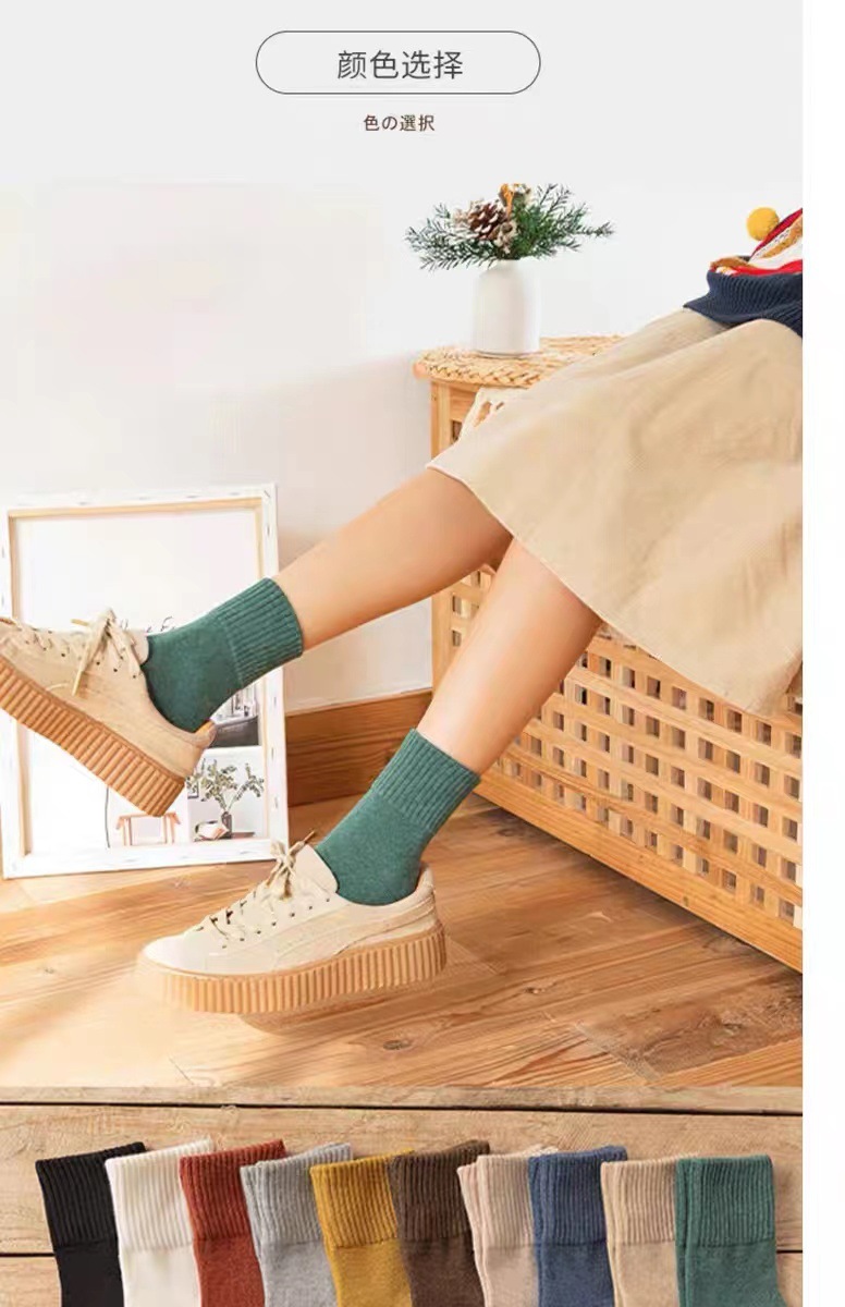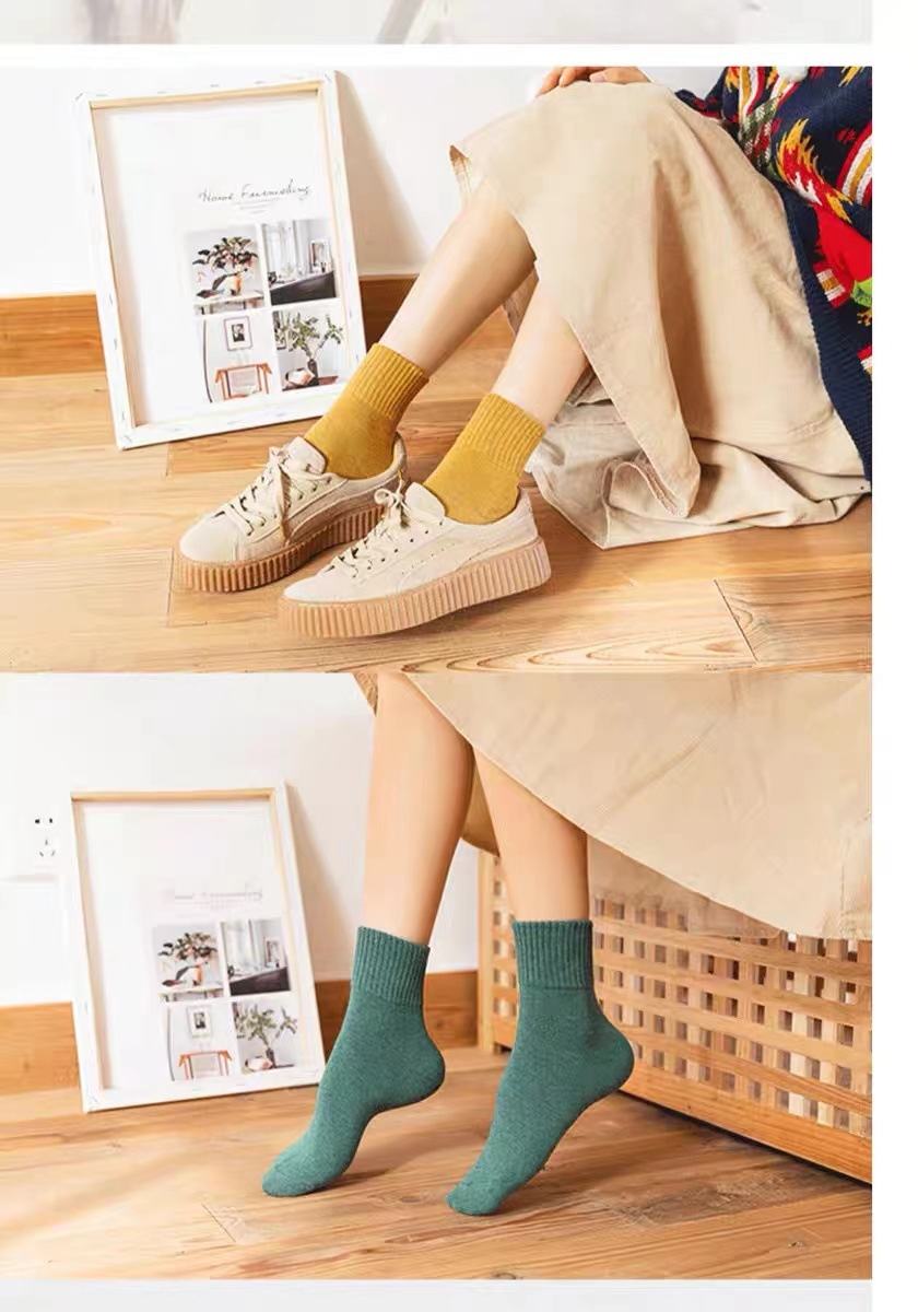 加绒加厚袜子女冬季中筒袜糖果色毛圈袜防臭长筒保暖学院风潮袜