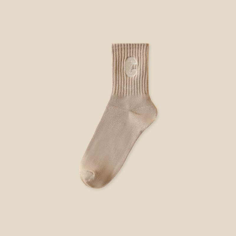 秋冬纯色袜子男女棉刺绣字母大C吸汗防臭学生运动中筒袜诸暨工厂