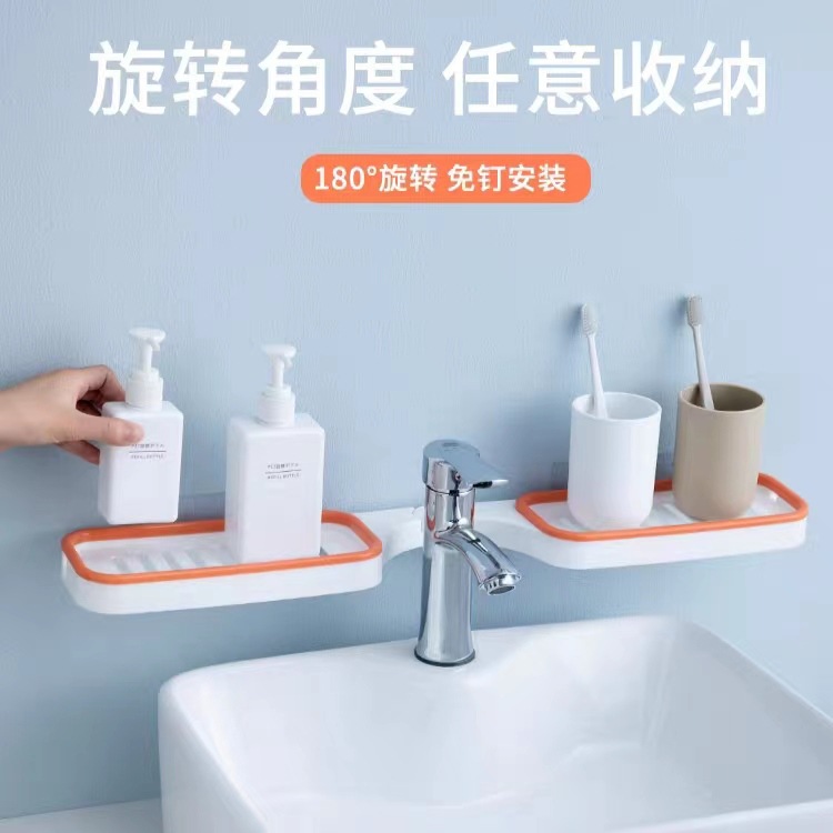转角置物架厨房浴室免打孔置物架壁挂超强吸附式收纳整理架沥水架