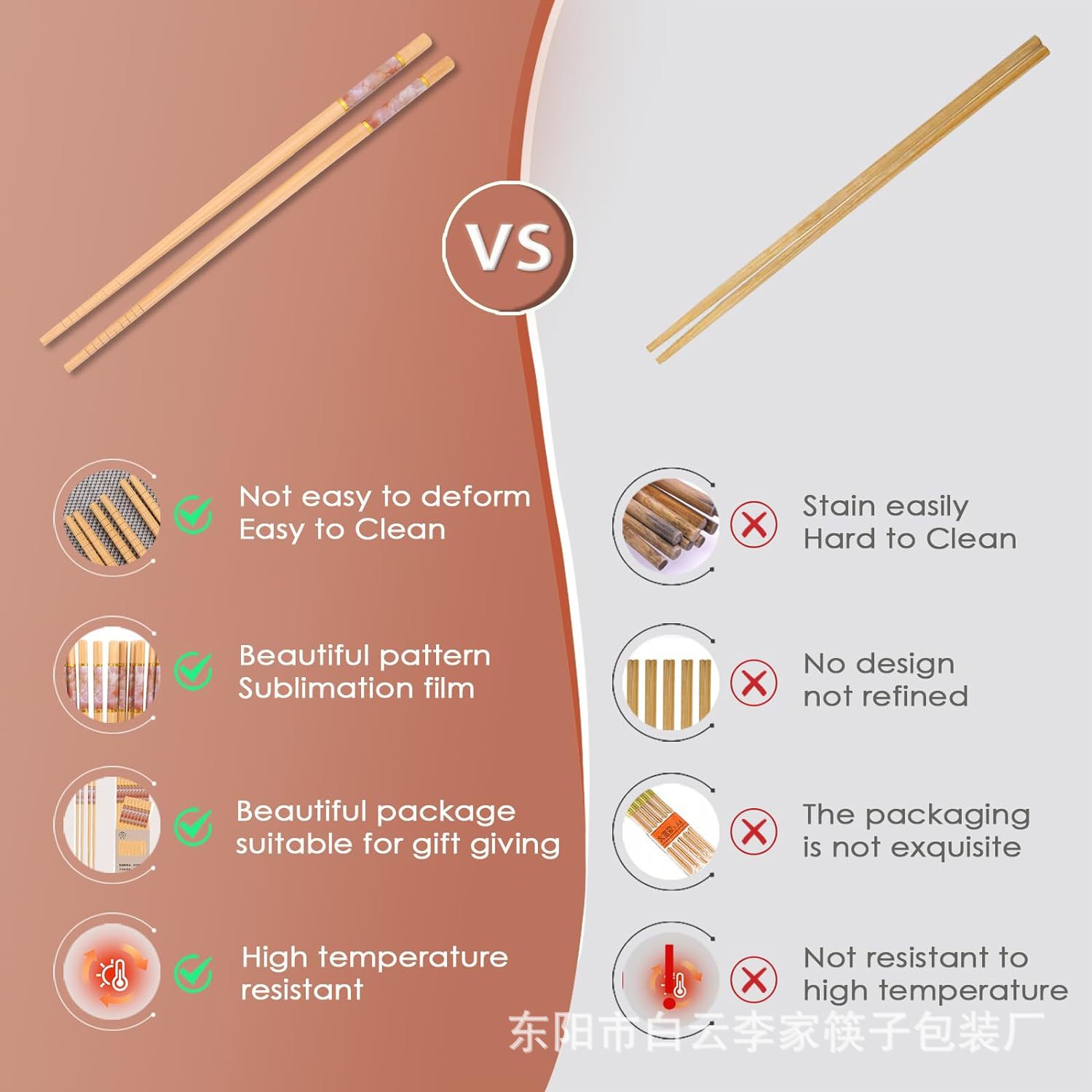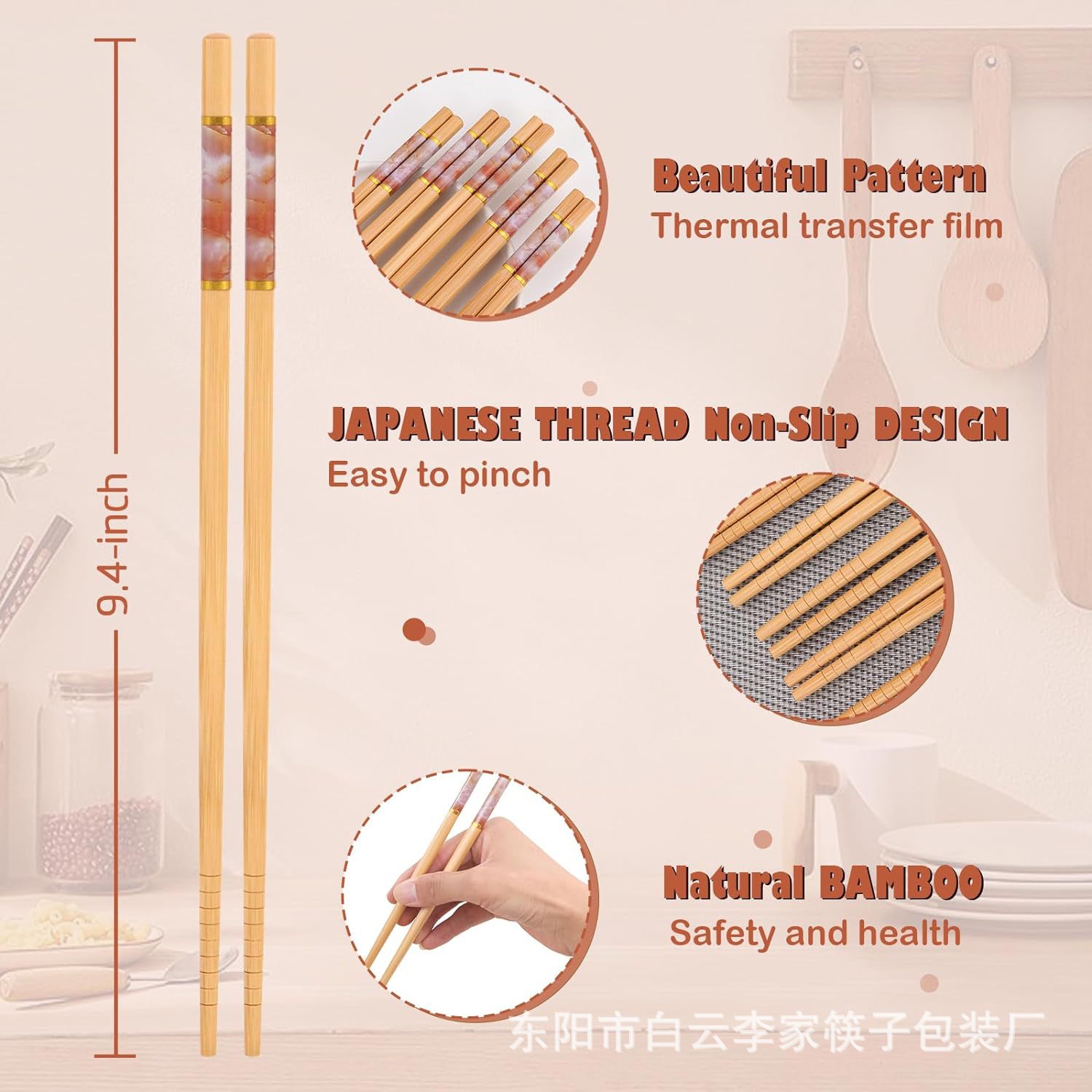 竹筷子家用高档耐高温防滑印花日式跨境亚马逊餐厅家庭装批发套装