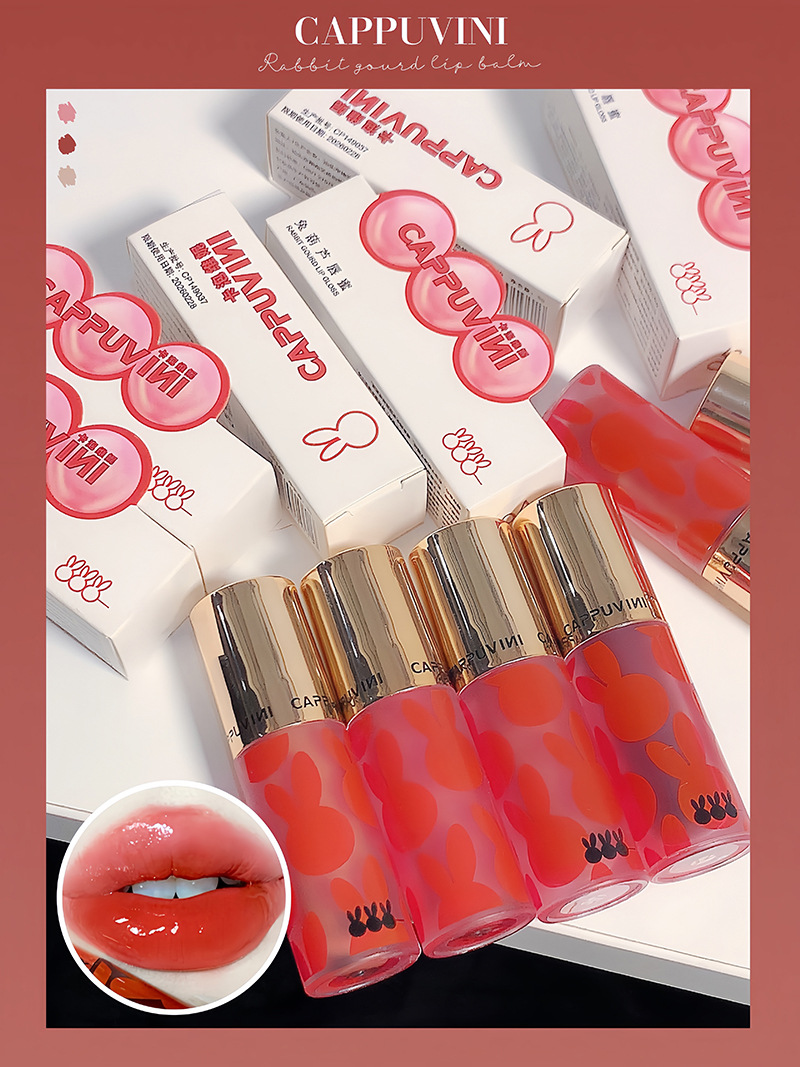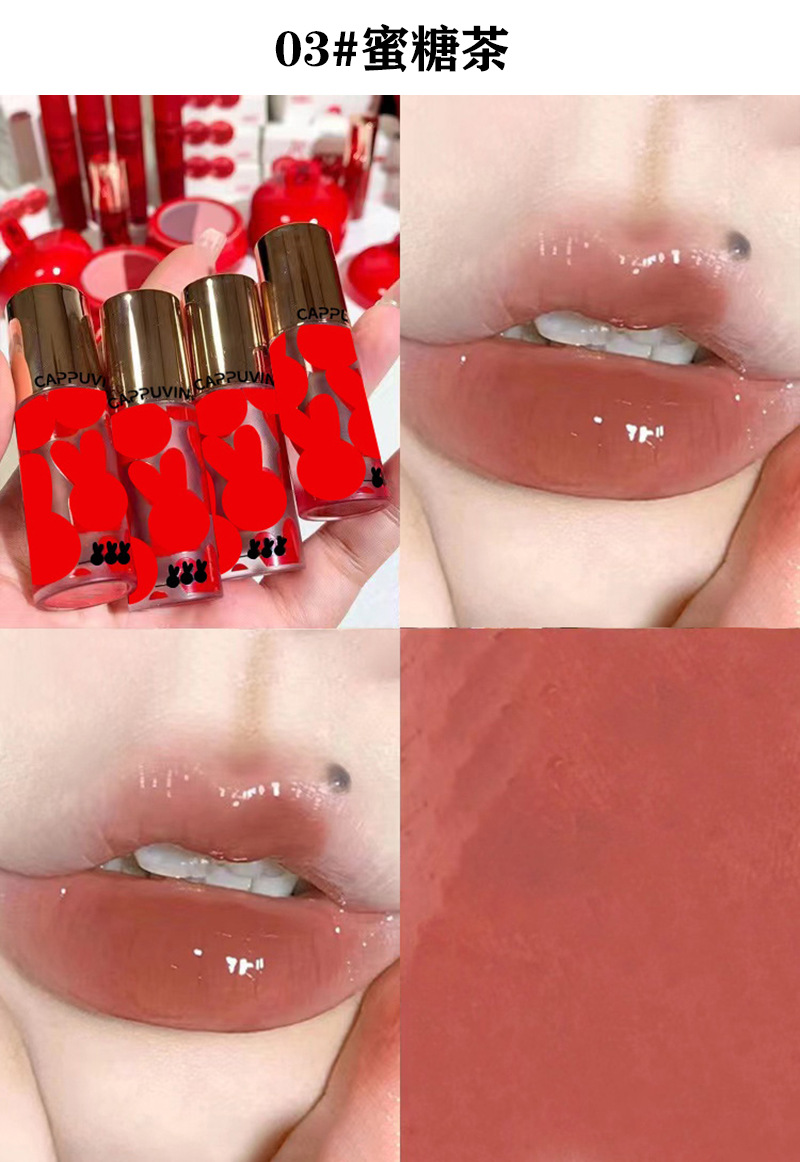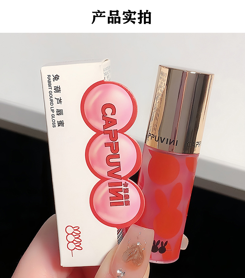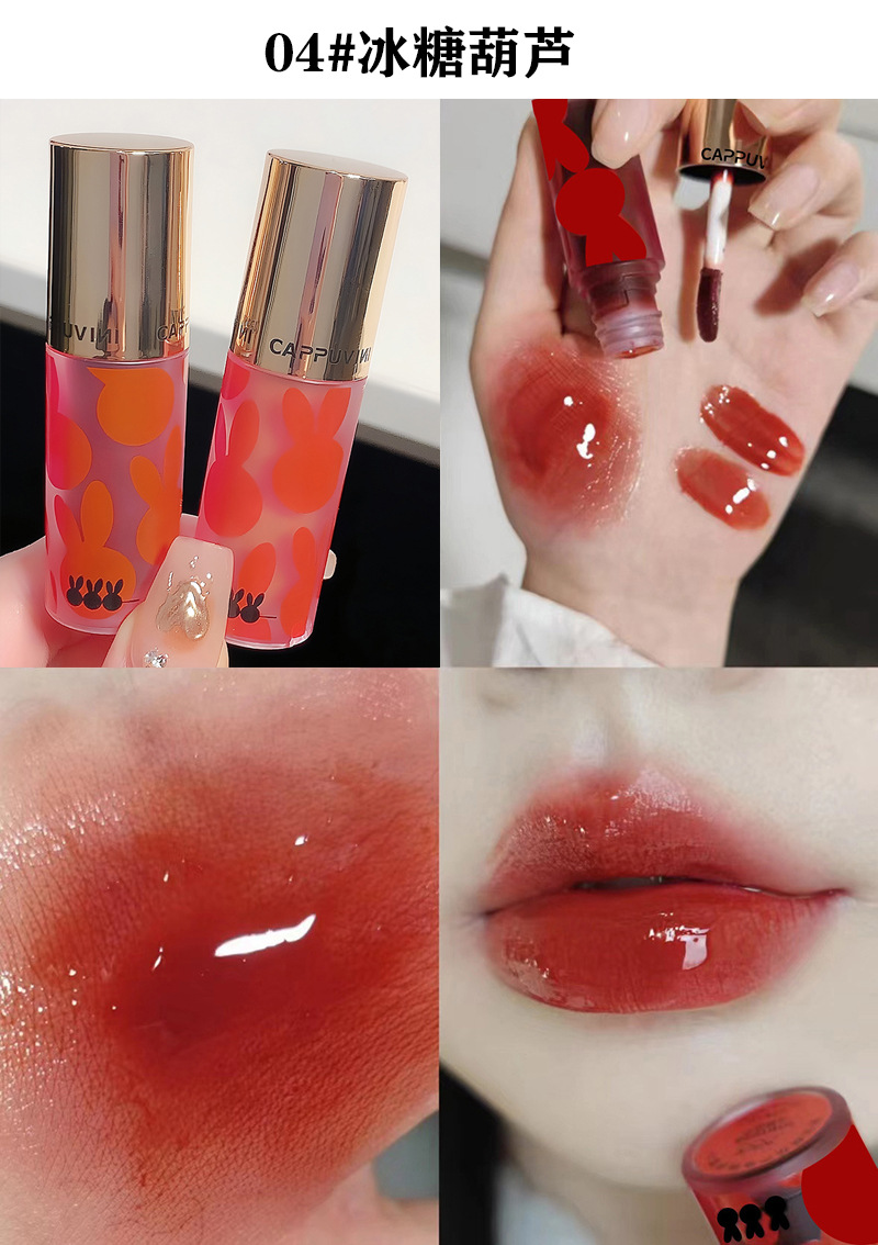 Cappuvini萌兔冰糖葫芦唇釉 镜面水光玻璃唇蜜卡泡维妮彩妆跨境