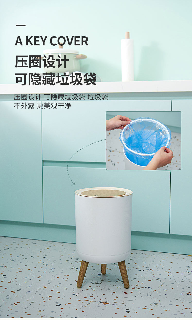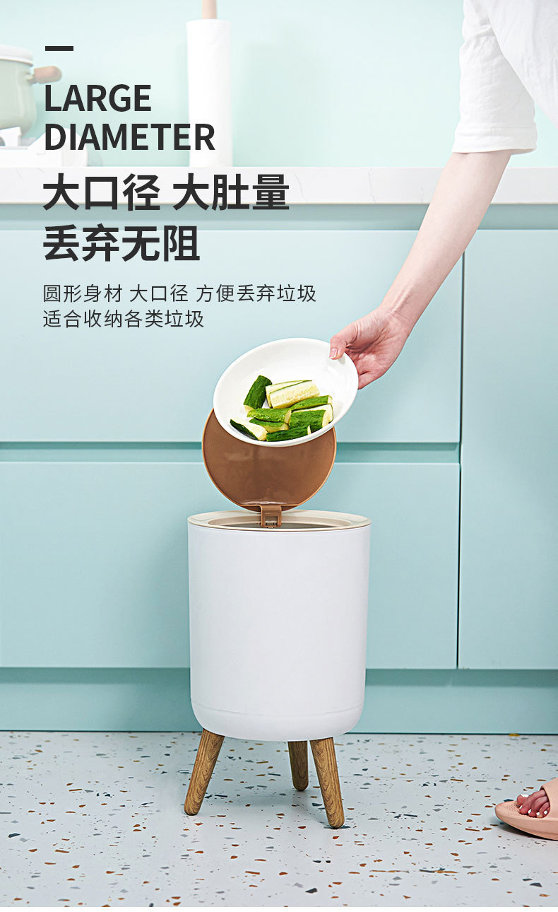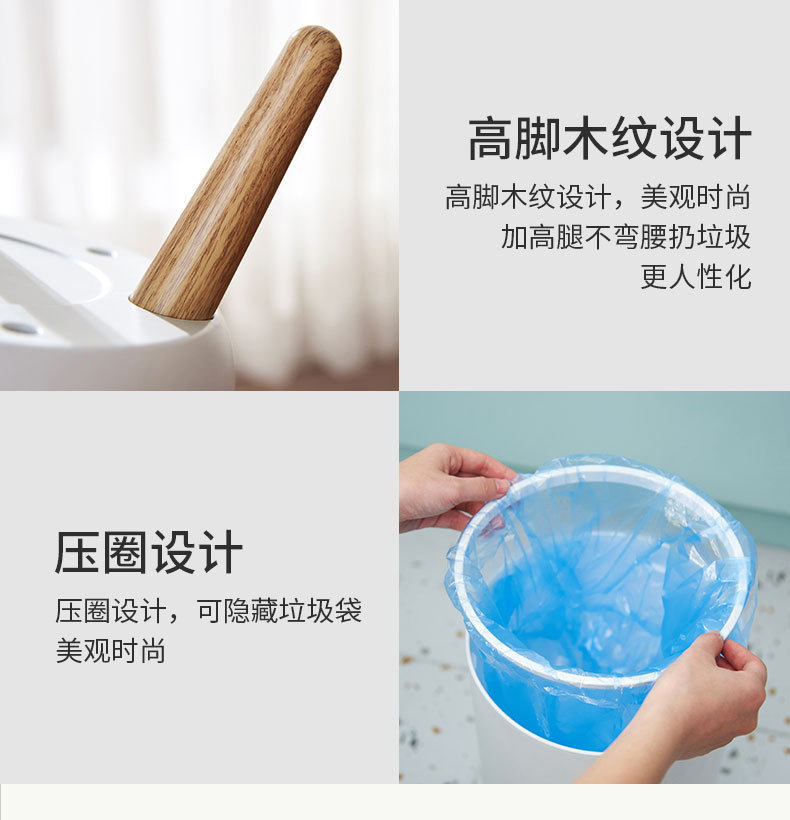 圆形带盖垃圾纸篓厨房卧室卫生间厕所创意按压高脚光板脚垃圾桶