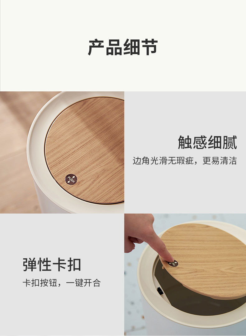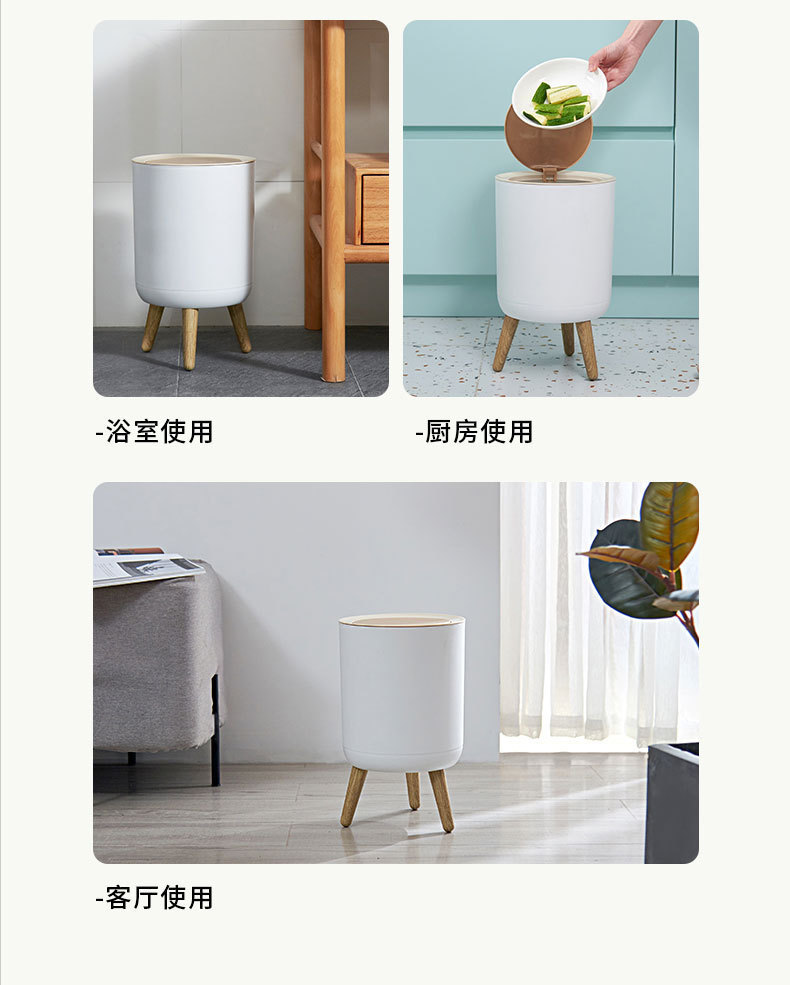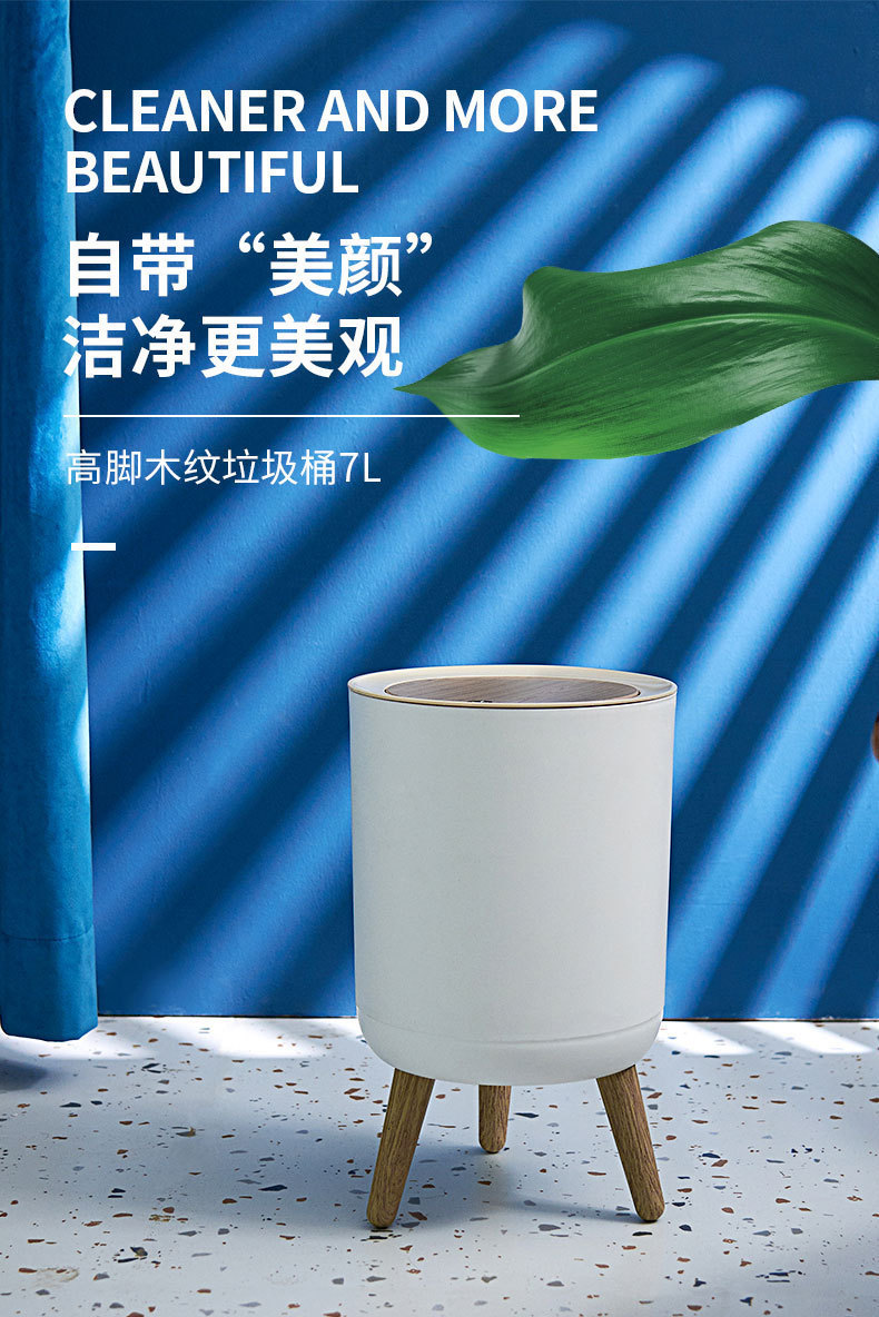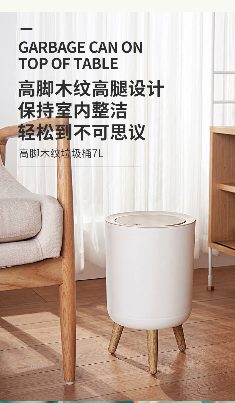 圆形带盖垃圾纸篓厨房卧室卫生间厕所创意按压高脚光板脚垃圾桶