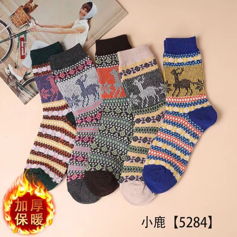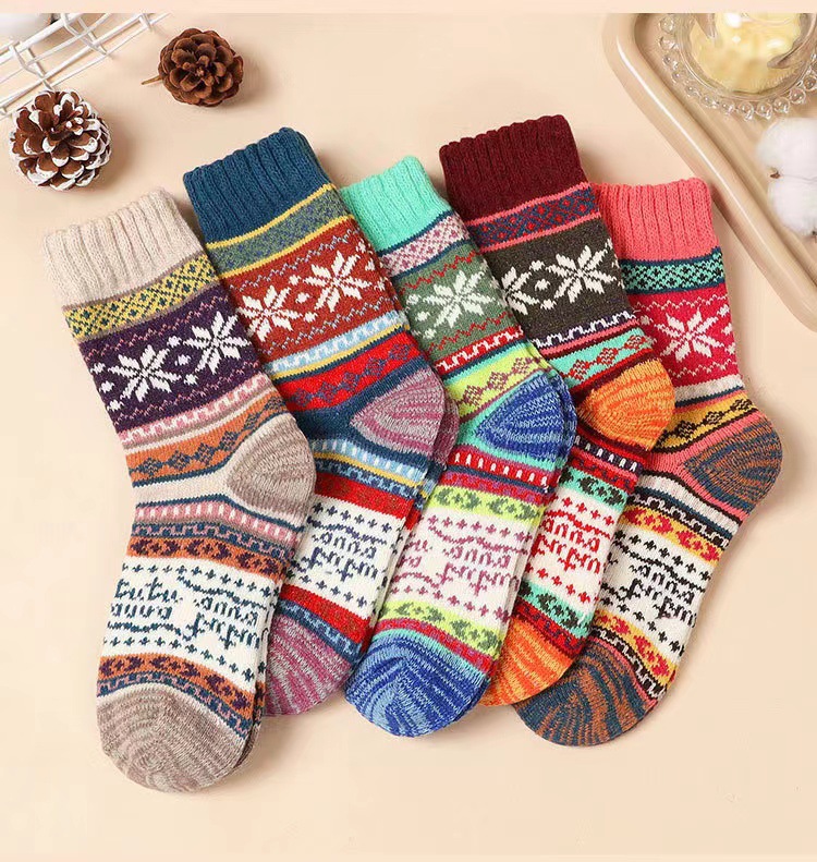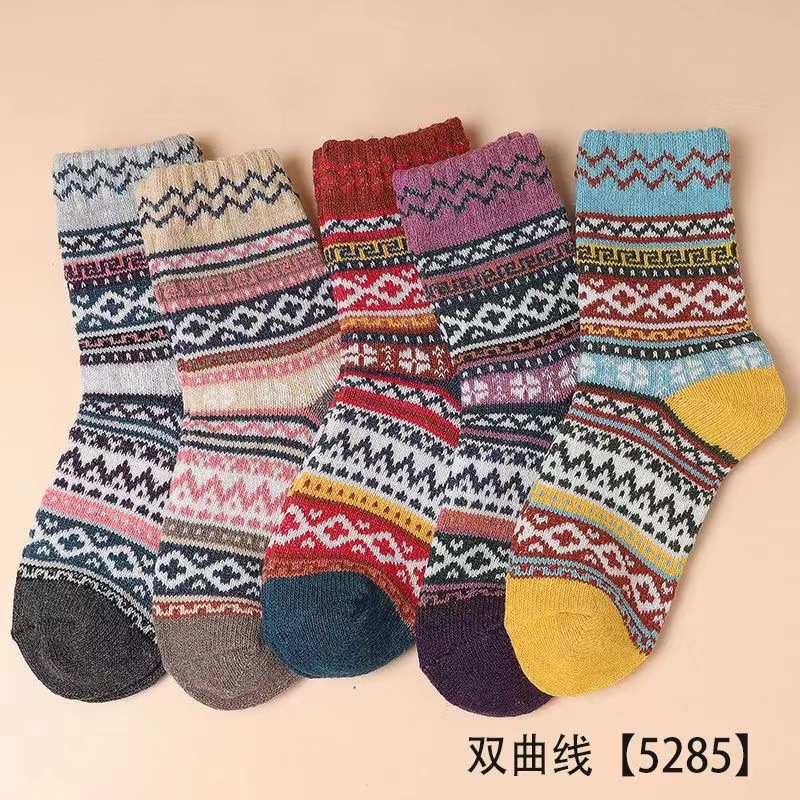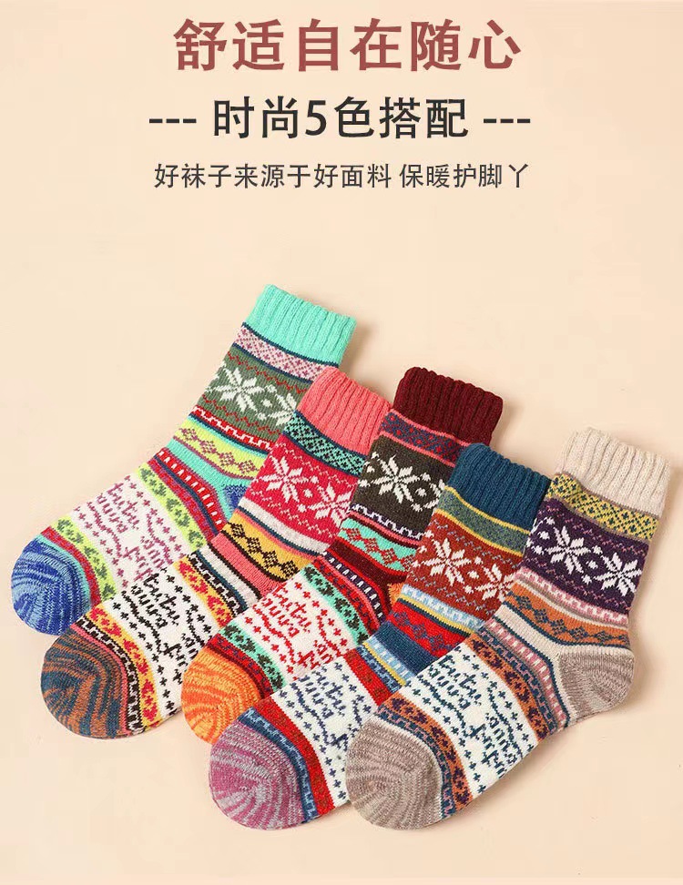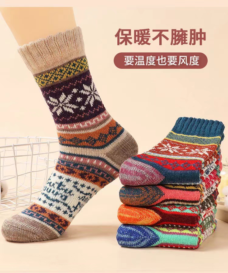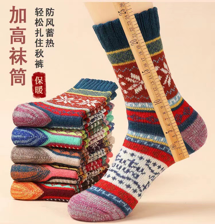 复古粗线袜子女长袜秋冬保暖加厚女士民族风图腾中筒袜冬季地毯袜