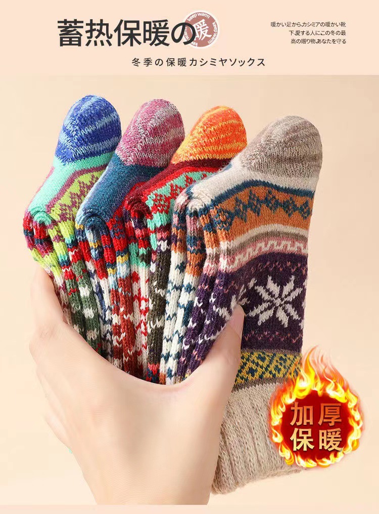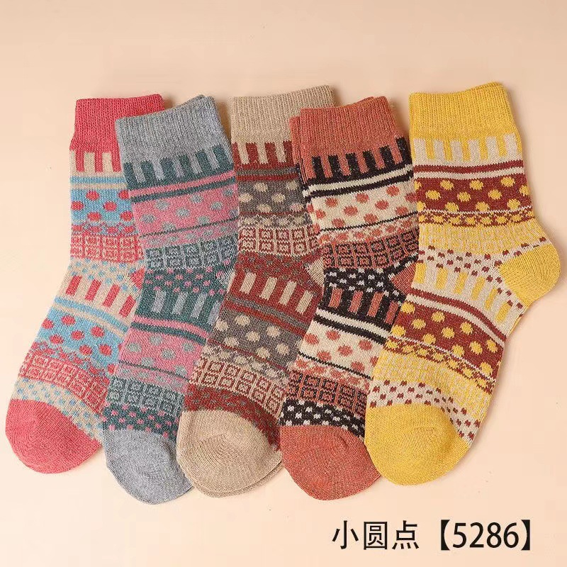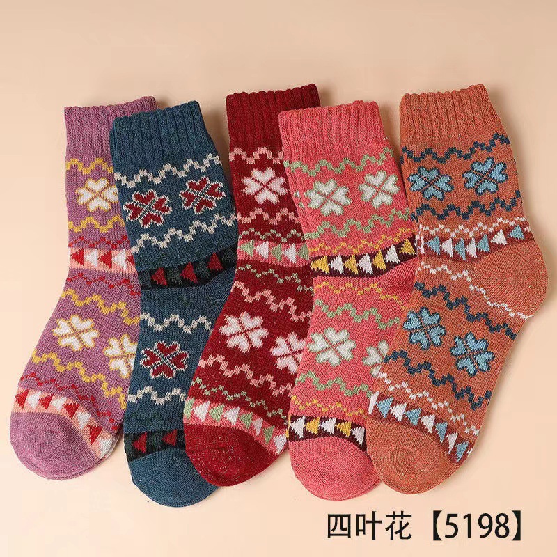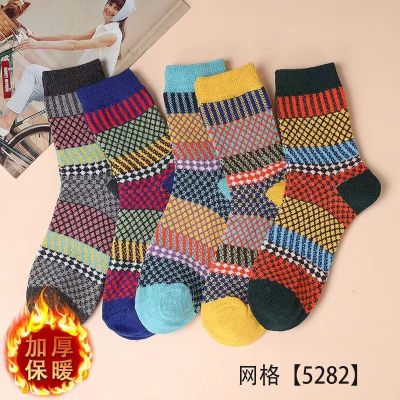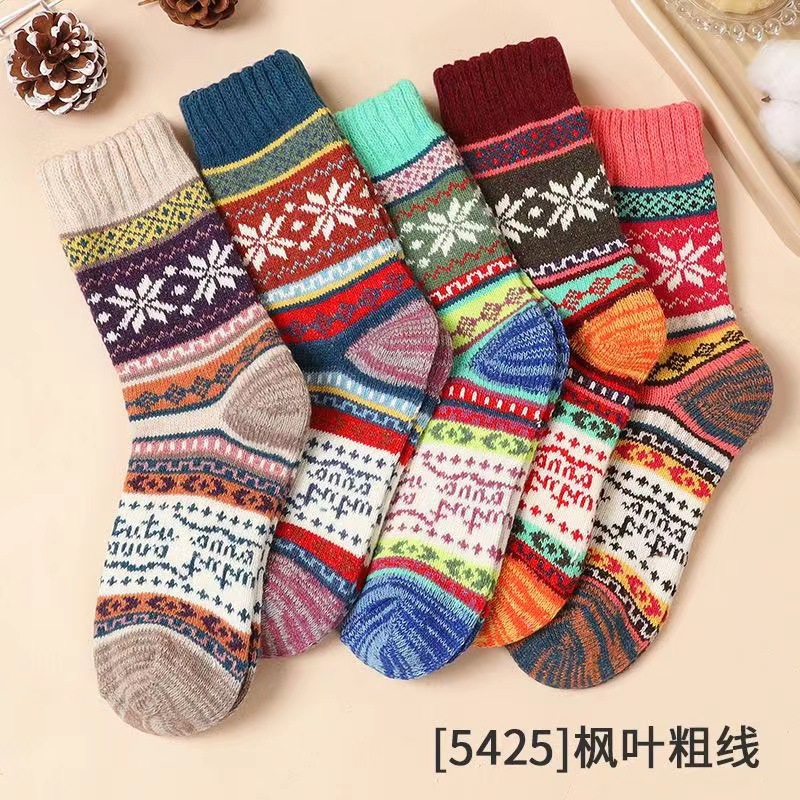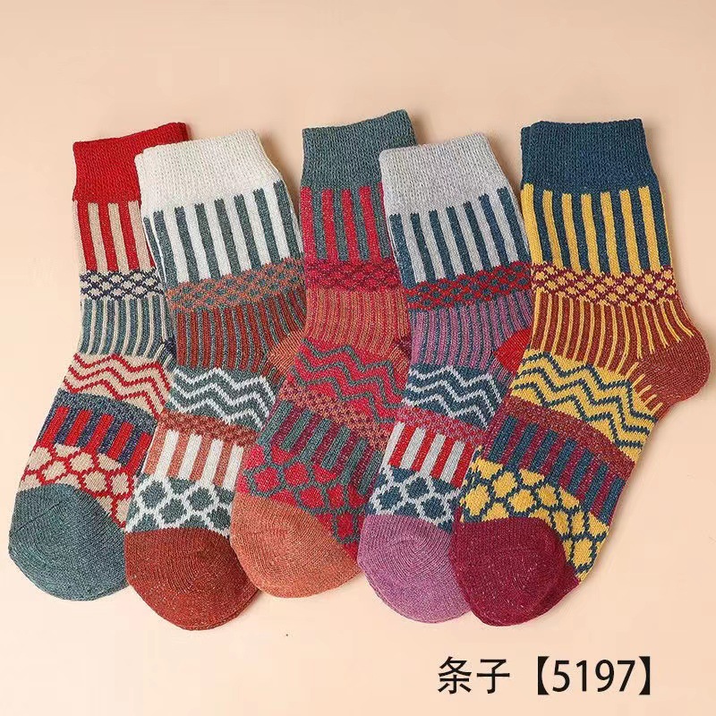 复古粗线袜子女长袜秋冬保暖加厚女士民族风图腾中筒袜冬季地毯袜