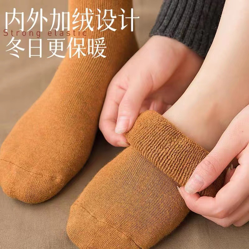 长筒袜子女小腿袜纯棉秋冬季加绒加厚冬天保暖睡眠雪地高筒月子袜