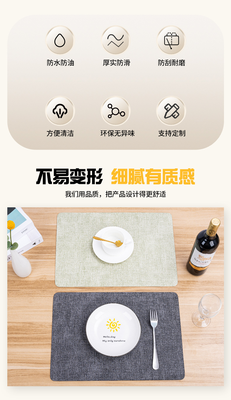 简约皮革隔热桌垫环保纯色皮革餐垫 酒店皮革桌垫餐垫可定 制加工