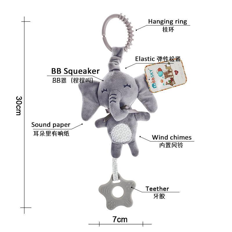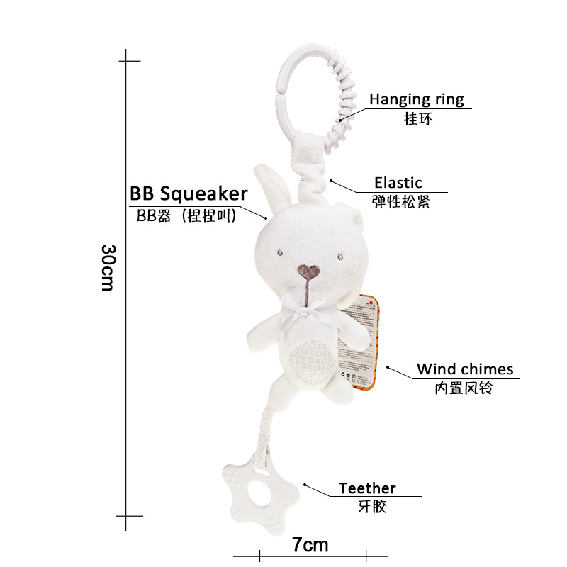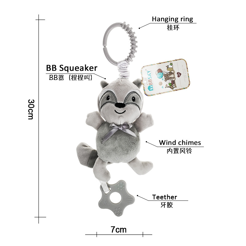 bbsky 婴儿车挂件卡通毛绒床挂婴儿响铃 摇铃捏捏叫玩具