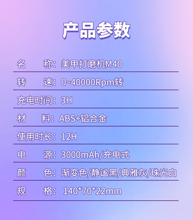 厂家新款电动美甲打磨机M40充电便携式打磨机去死皮磨甲器跨境