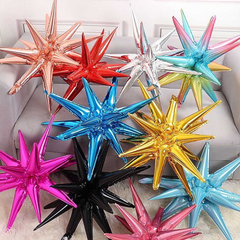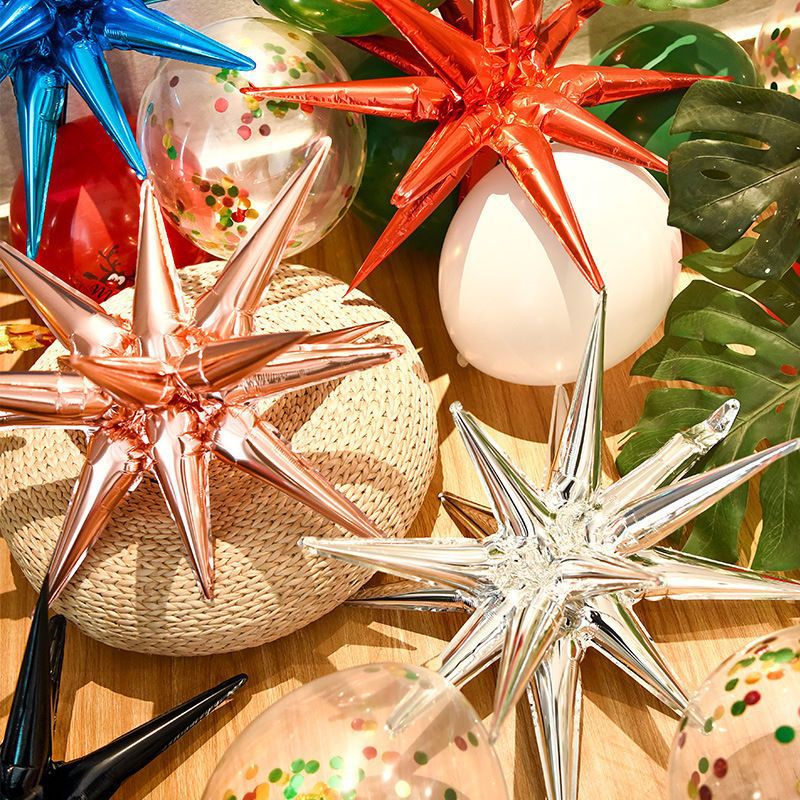 跨境爆炸星水滴造型铝膜气球 六芒星生日派对商场布置气球批发