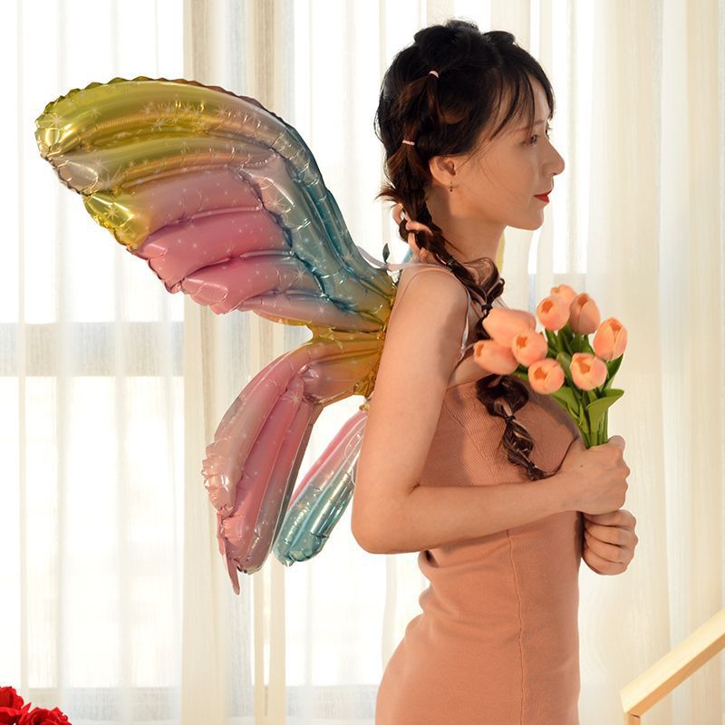 网红蝴蝶翅膀气球天使翅膀铝膜气球 地摊夜市公园儿童节卡通气球