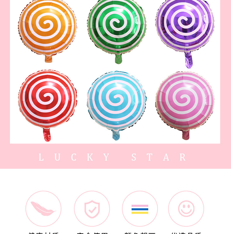 卡通彩色铝膜气球 18寸卡通棒棒糖气球派对宝宝周岁布置装饰气球