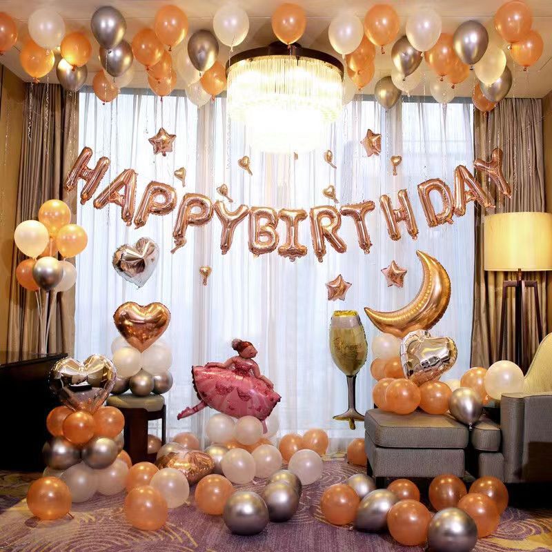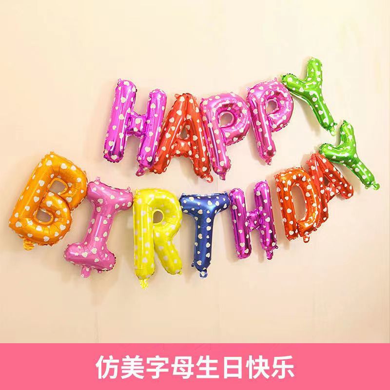 16英寸字母HAPPY BIRTHDAY纸卡套餐生日快乐铝膜气球装饰布置背景