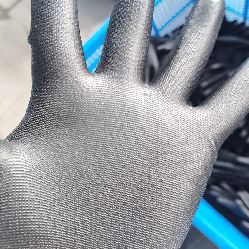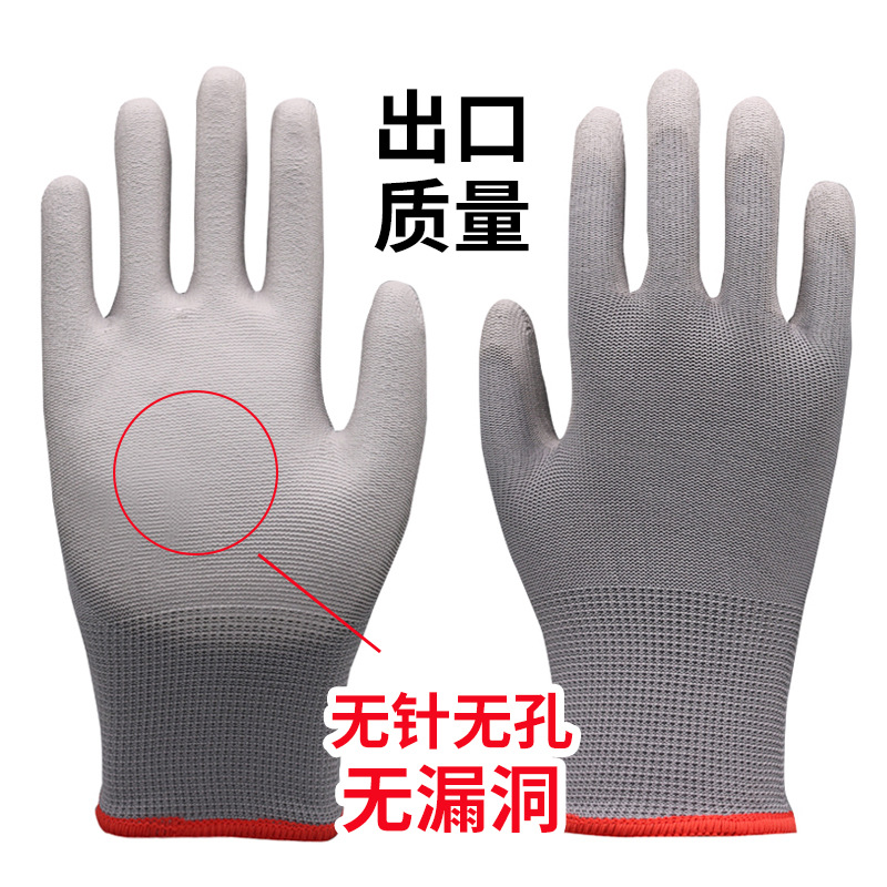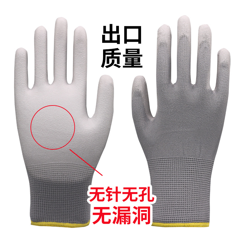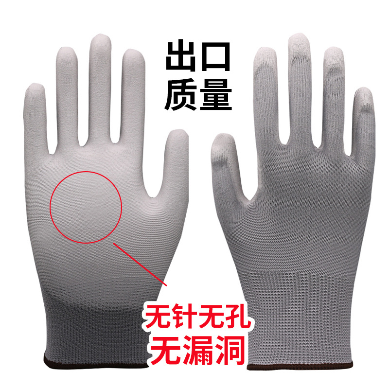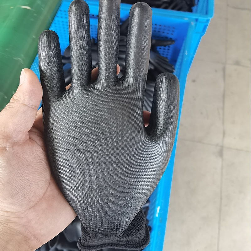 黑色PU涂掌手套无尘电子工厂防静电涂层劳保手套批发黑灰涂掌手套