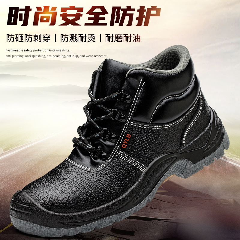 实心PU底防刺穿耐油焊工耐磨劳保鞋高帮牛皮防烫工作鞋钢头工装靴