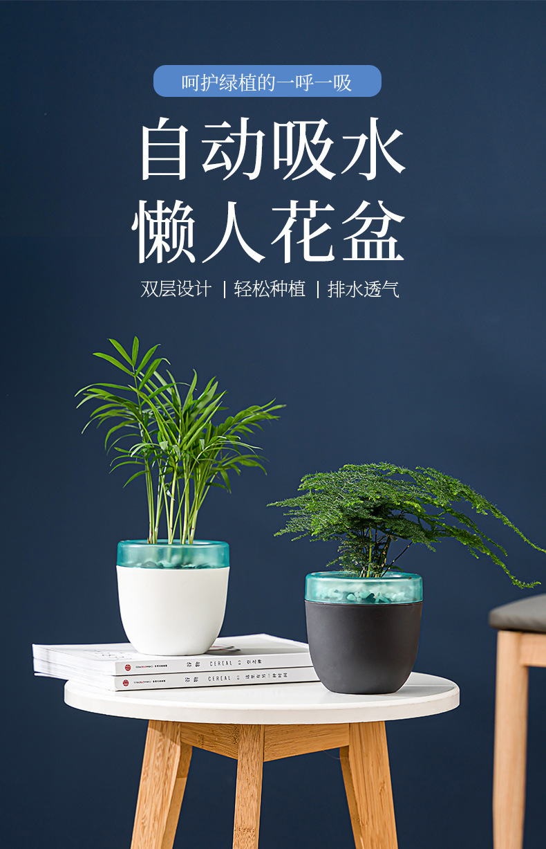 自动吸水免浇灌储水花盆懒人自动浇水绿萝树脂塑料多肉盆厂家直销