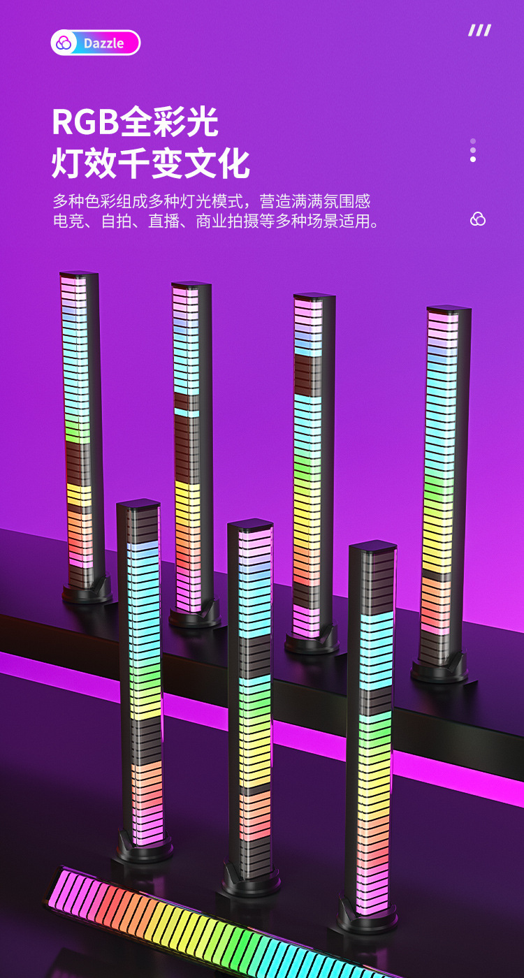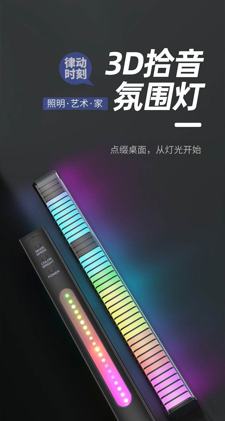外贸专供RGB拾音节奏灯led电竞声控音乐感应灯炫彩电脑车载蓝牙灯