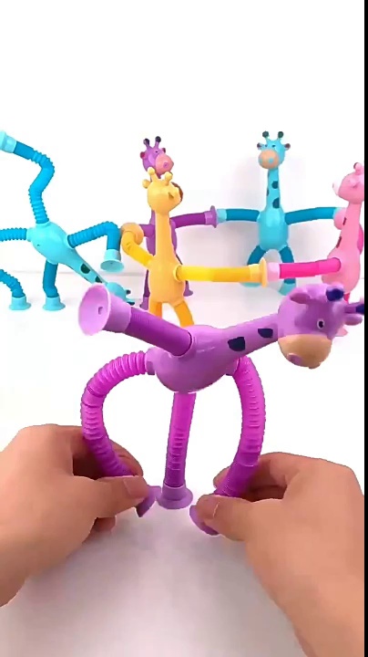 跨境发光百变吸盘长颈鹿伸缩管卡通拉伸管长颈鹿益智新奇解压玩具