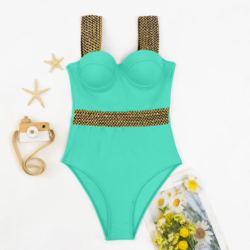 跨境连体泳衣欧美金性感比基尼女bikini印花钢托三角亚马逊游泳装