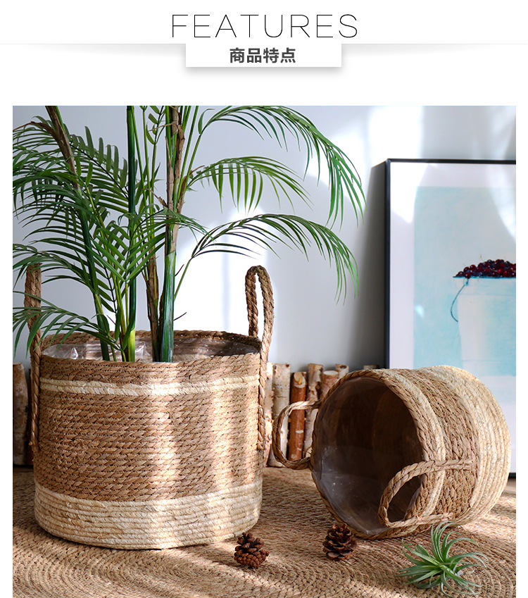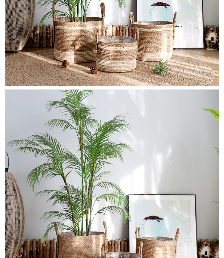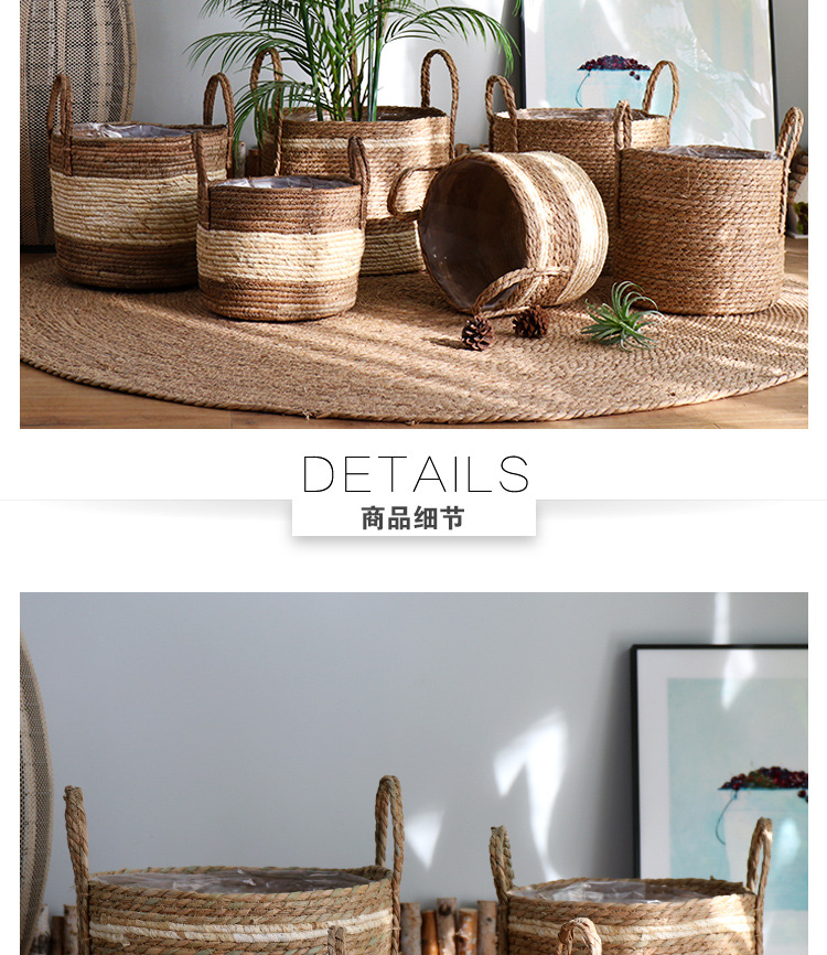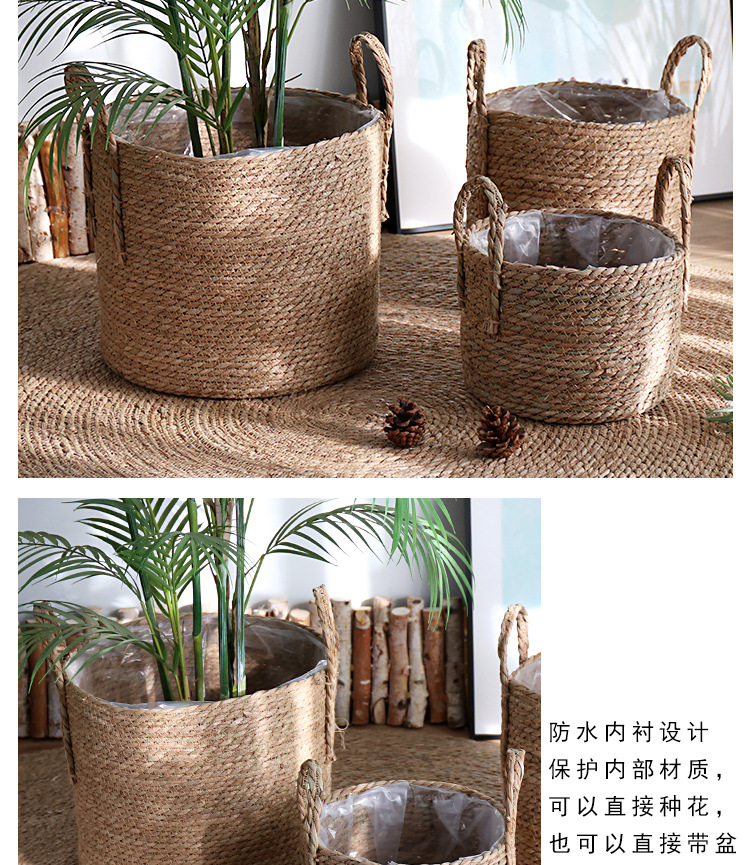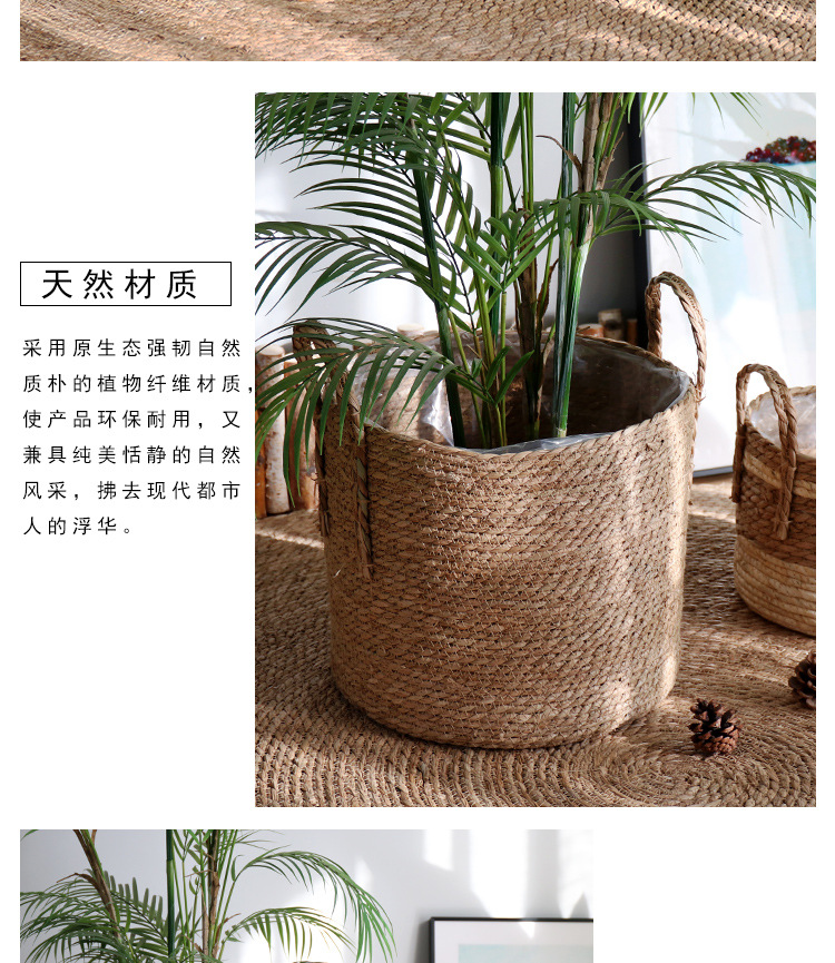 北欧藤编草编花盆植物绿植落地大套盆编织花篮高档轻奢家居装饰篮