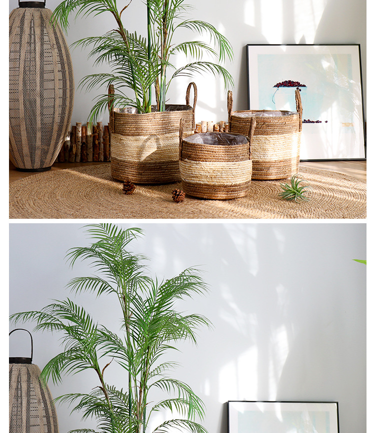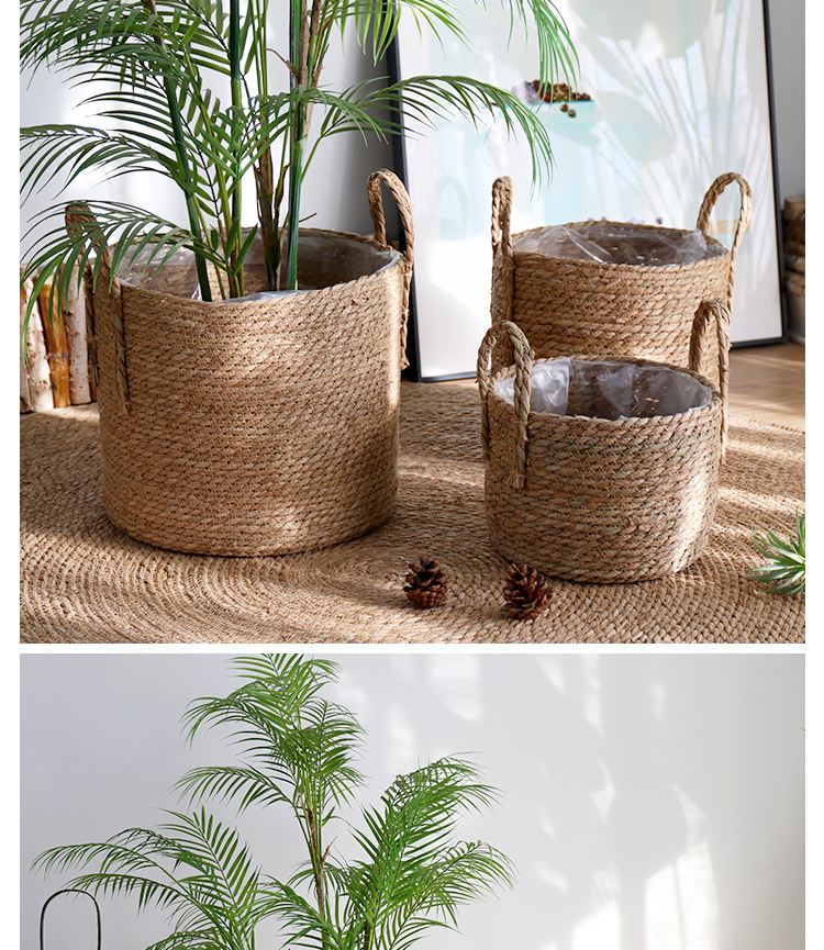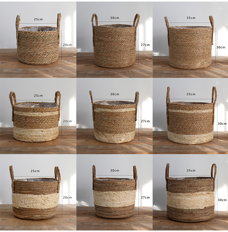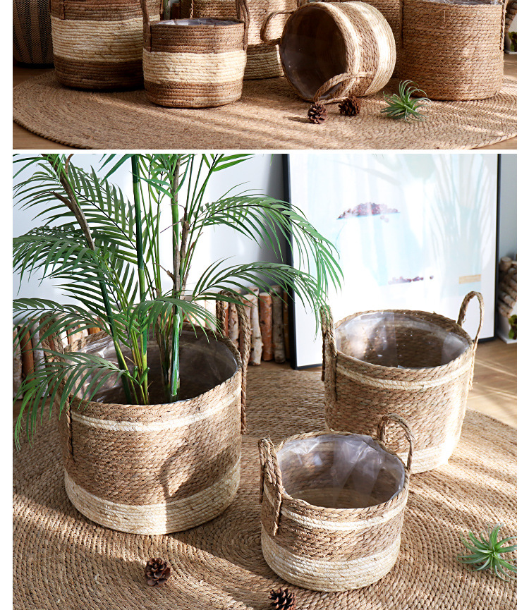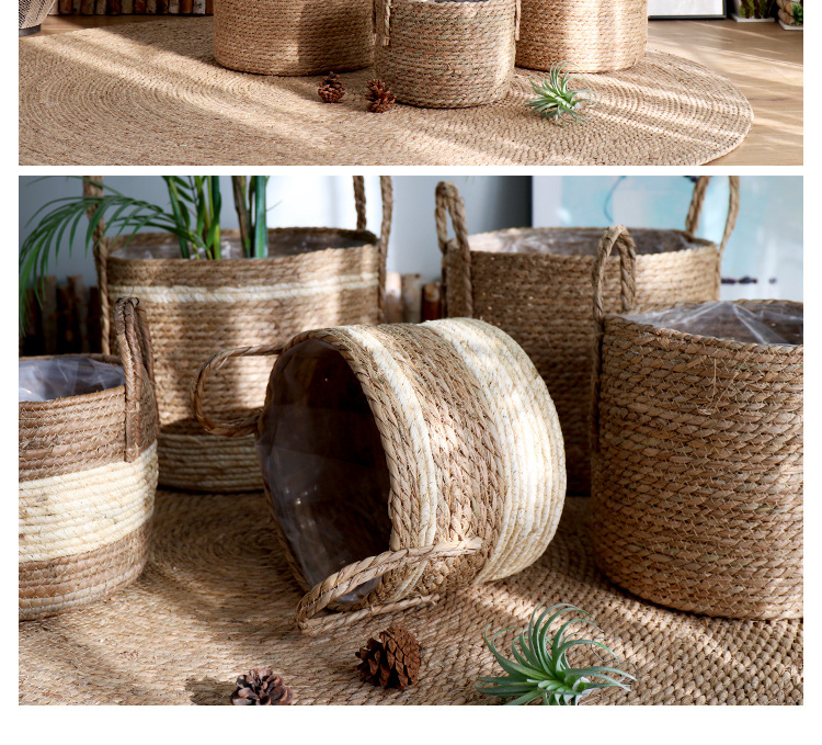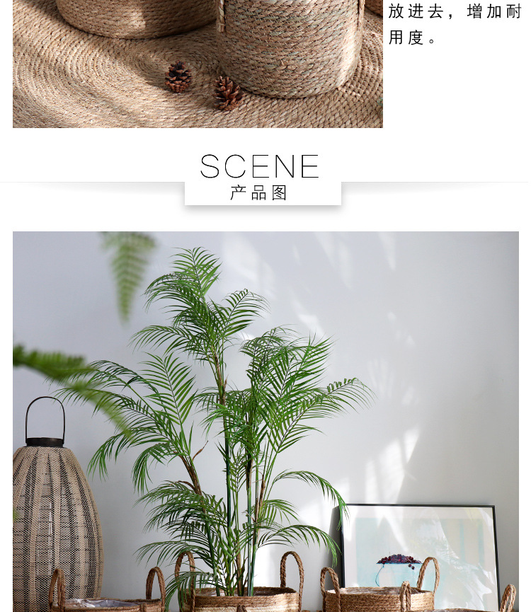 北欧藤编草编花盆植物绿植落地大套盆编织花篮高档轻奢家居装饰篮