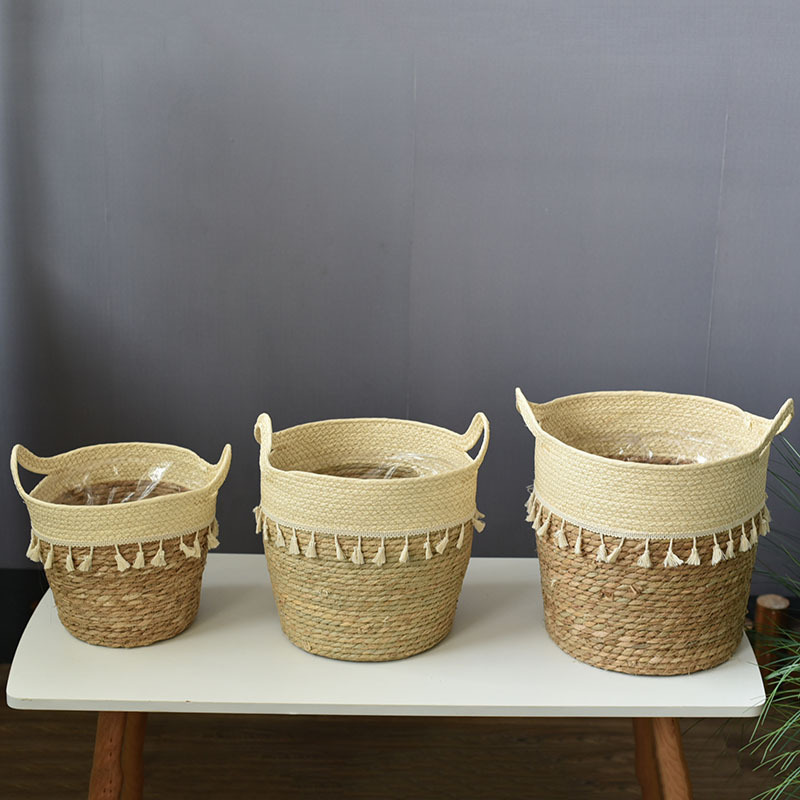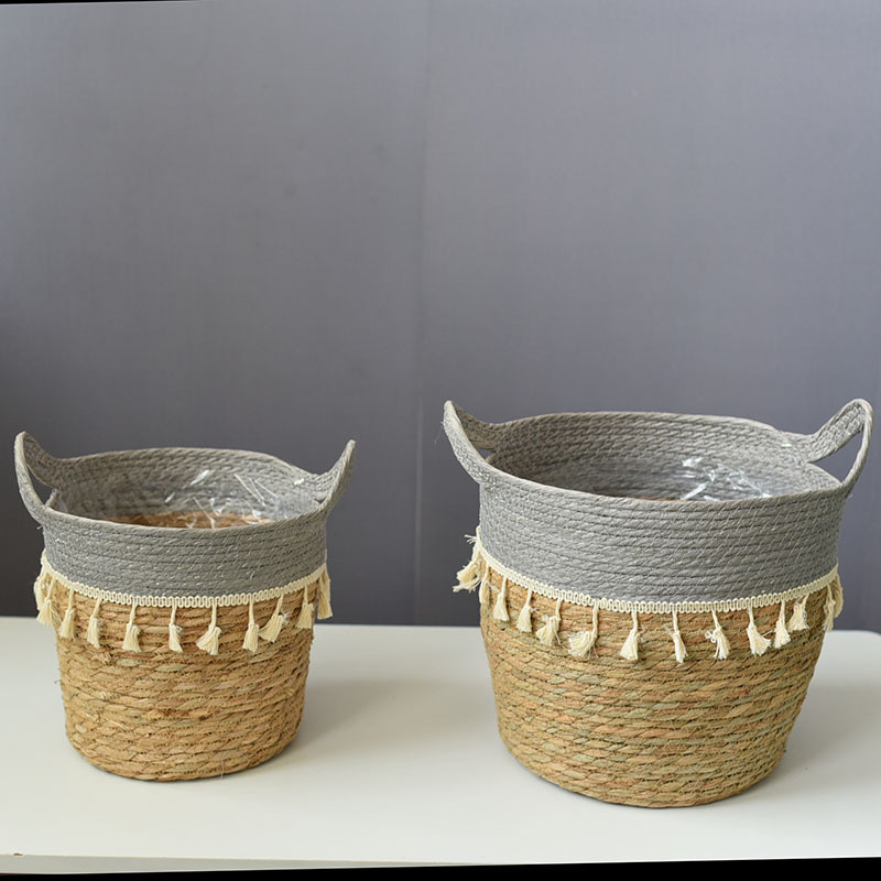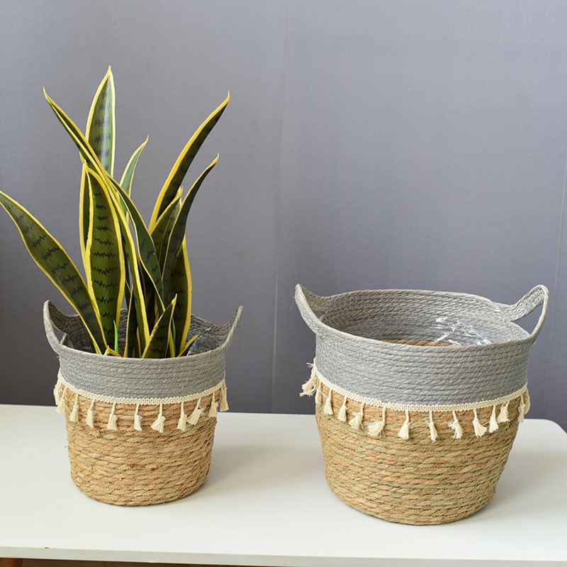 草编花盆草绳编织柳编花篮手柄家居装饰摆设工艺竹编篮子植物篮