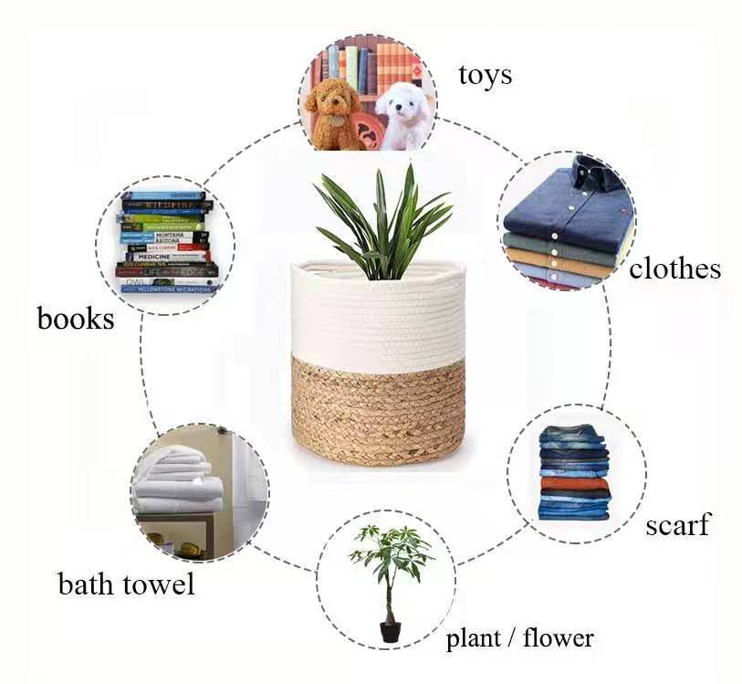 草编收纳筐棉麻海草越南草跨境收纳篮家用篮田园植物置物杂志框篮