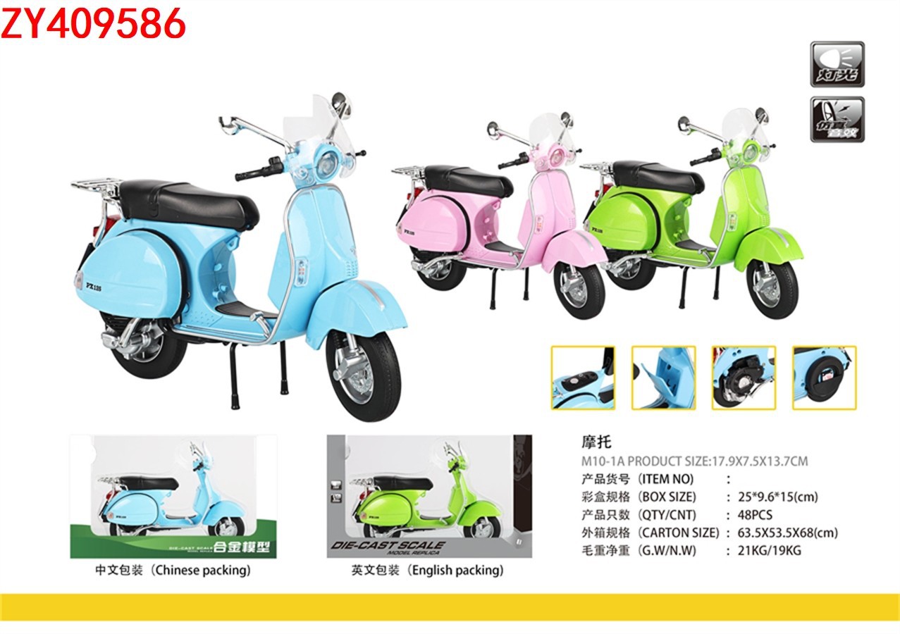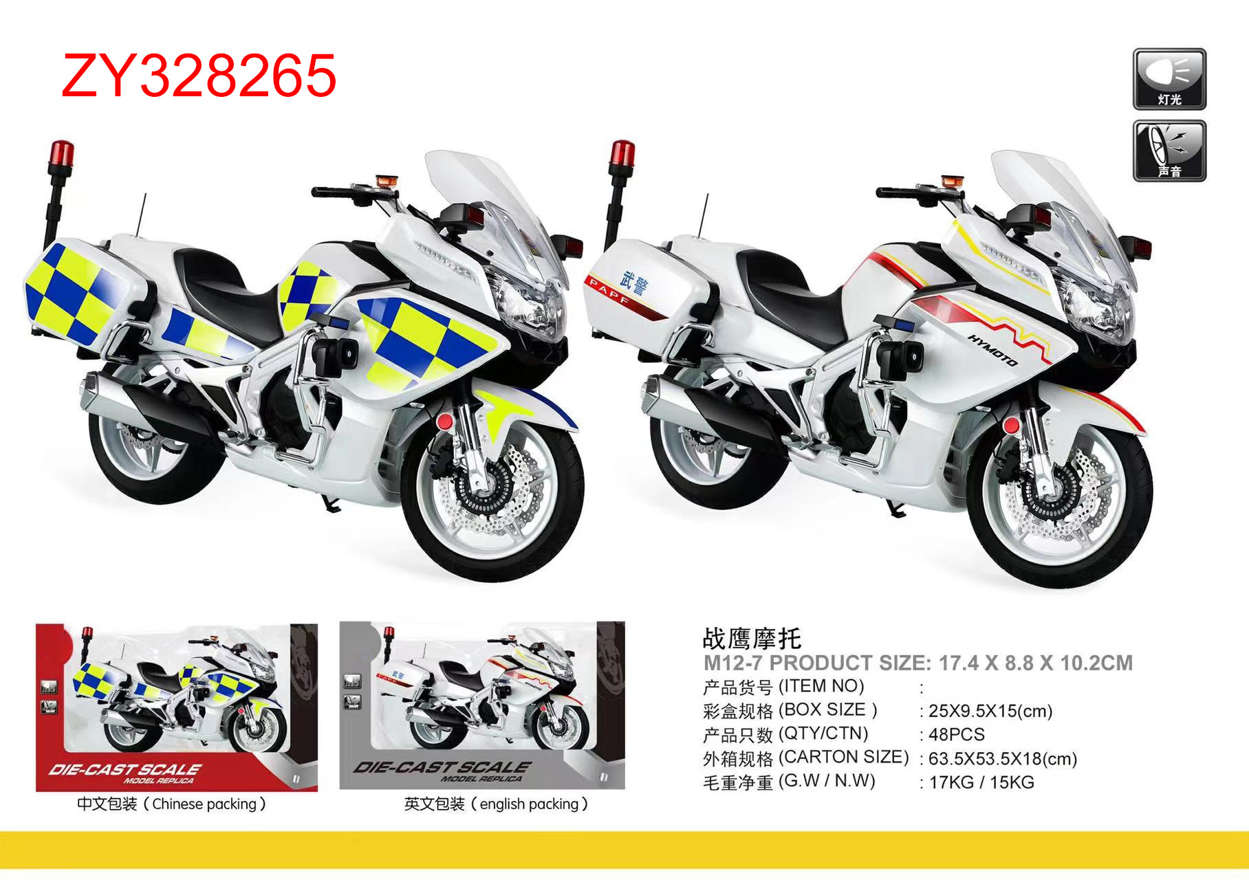 1:12战鹰摩托车儿童玩具回力惯性合金警车高级模型声效灯光男孩