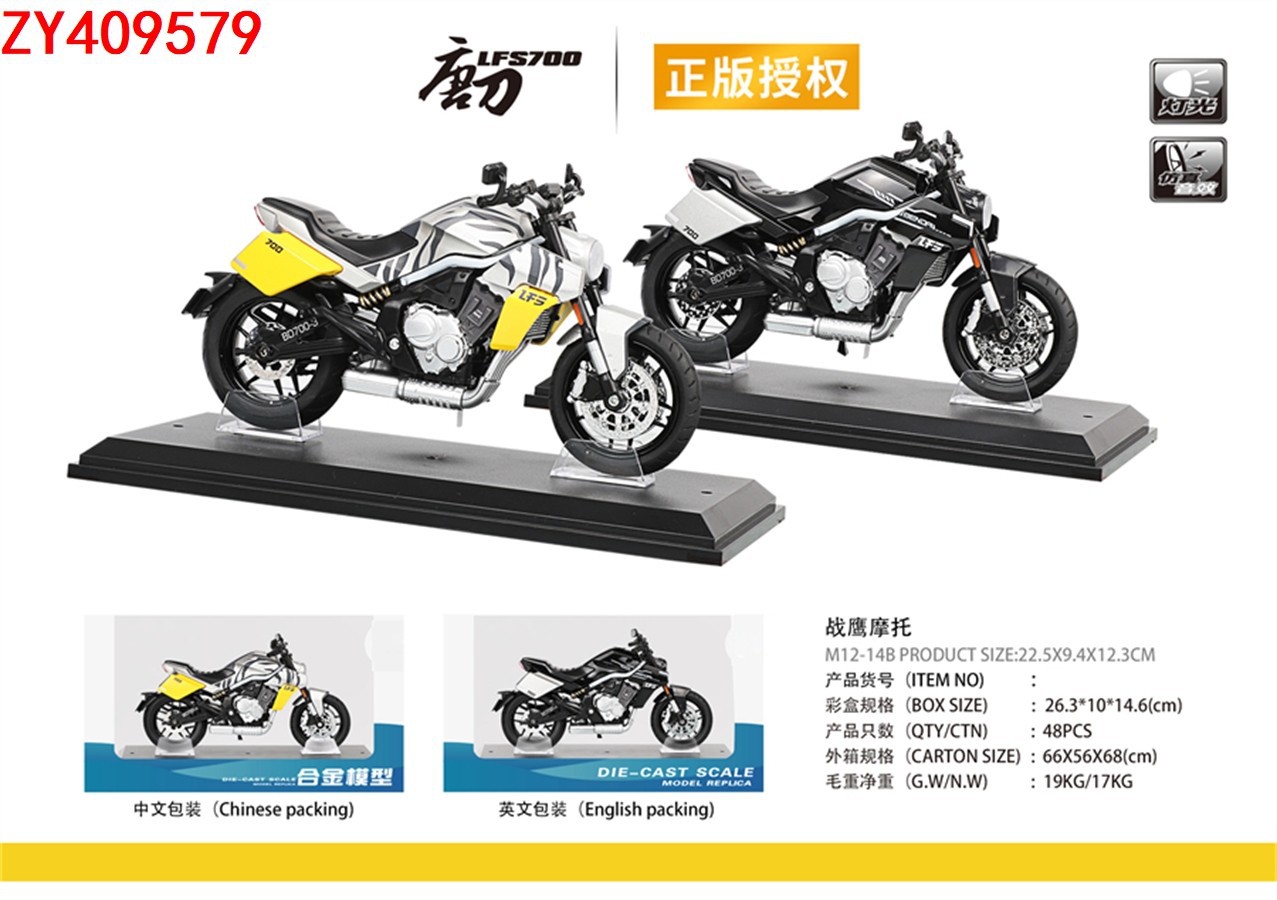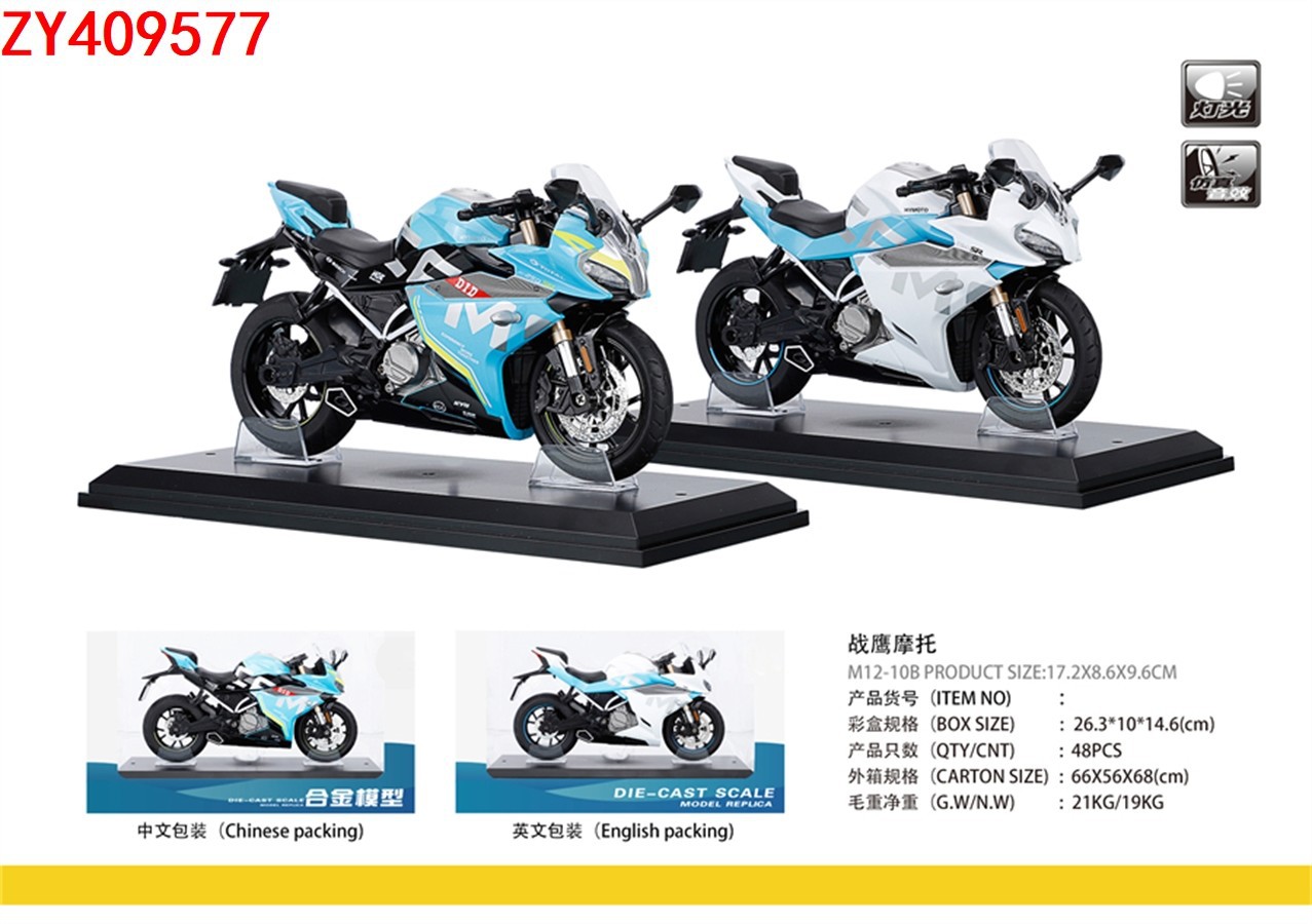 1:12仿真战鹰机车模型摆件声光金属玩具回力合金摩托车(带底座)