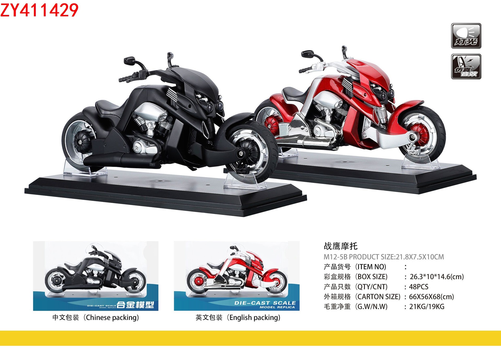1:12仿真Gavin Motorcycle战鹰摩托车模型收藏礼物声光(带底座)