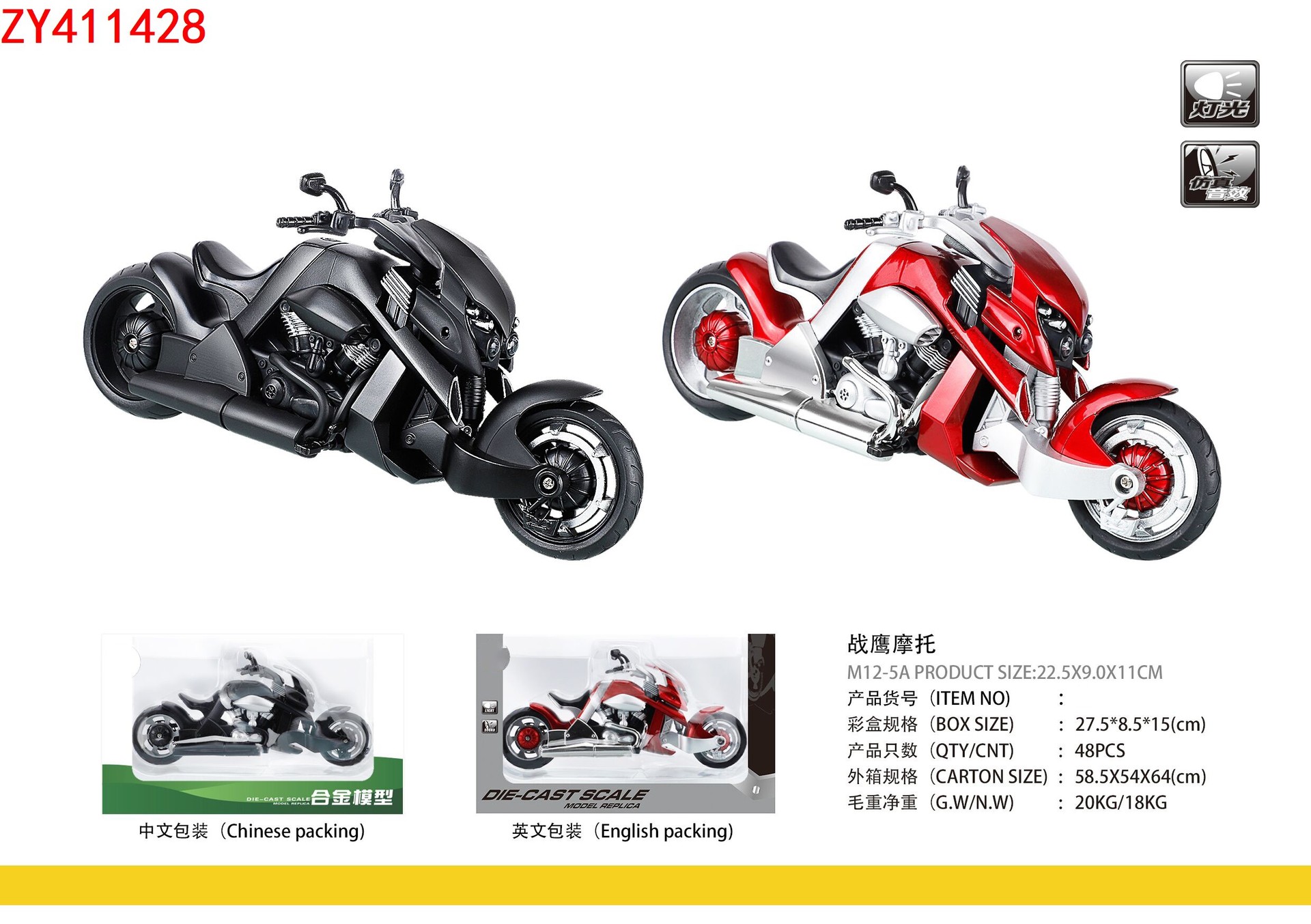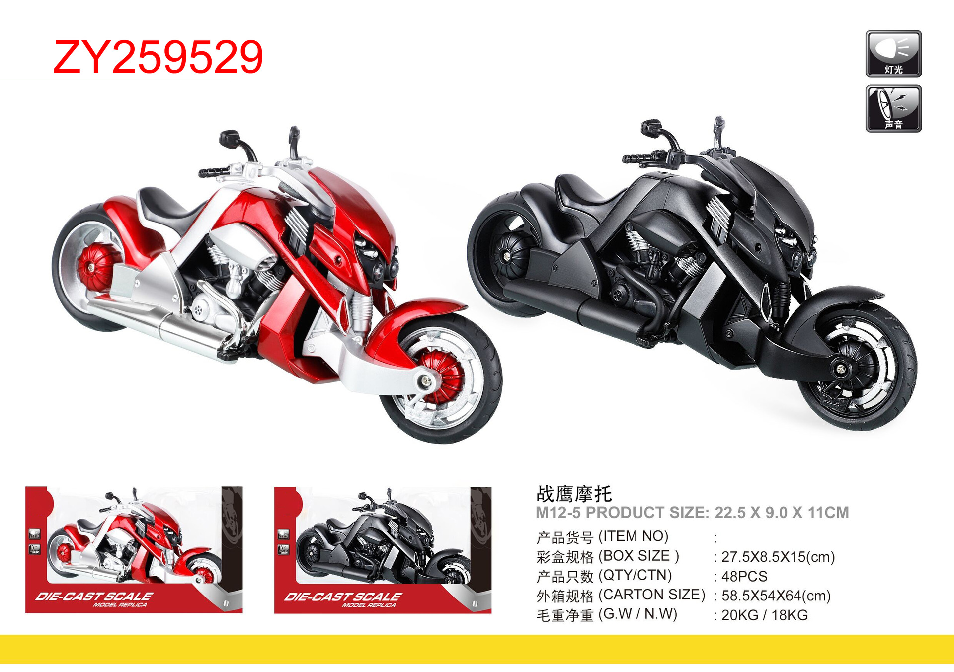 1:12仿真合金战鹰摩托车合金模型儿童带声光滑行摆件礼品