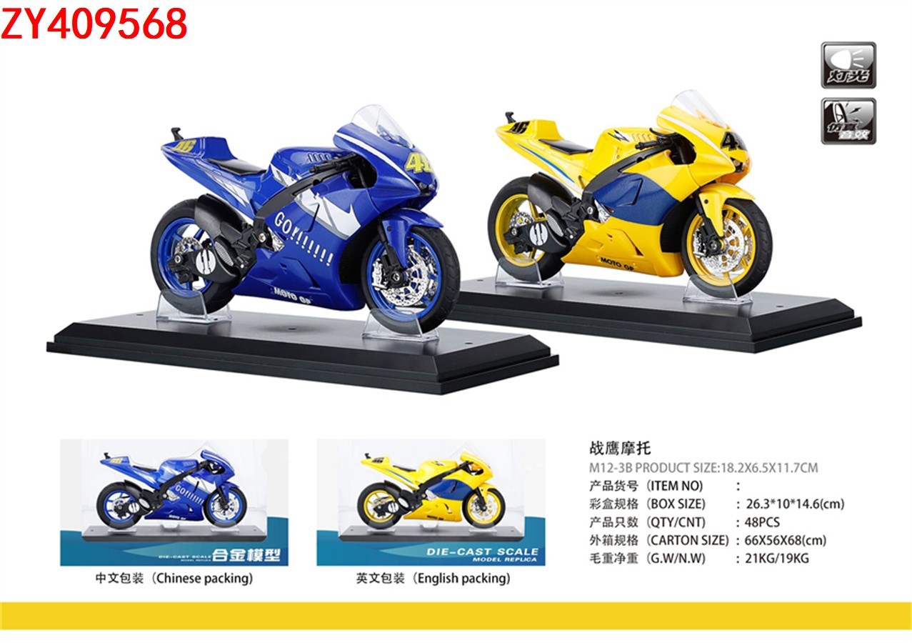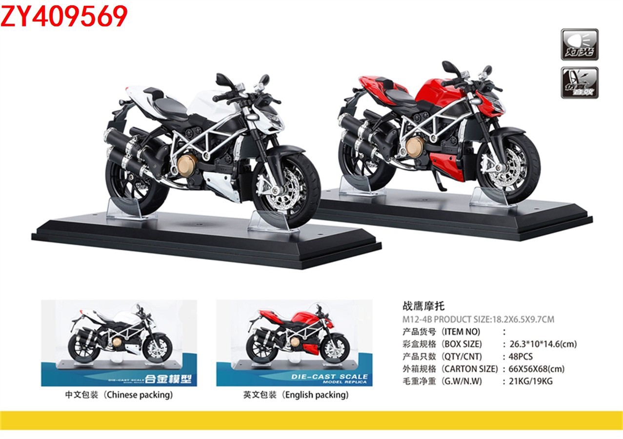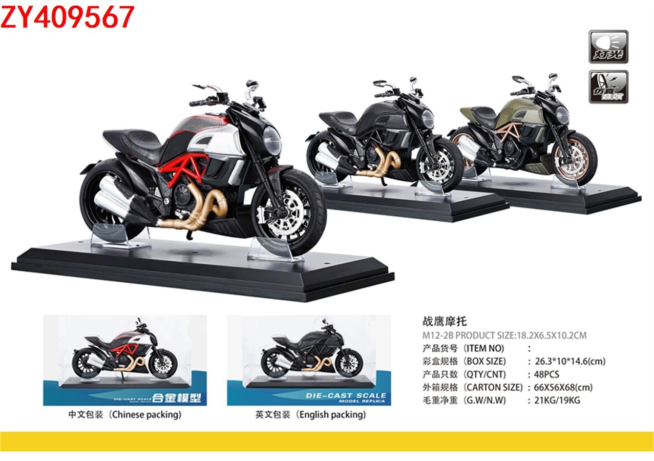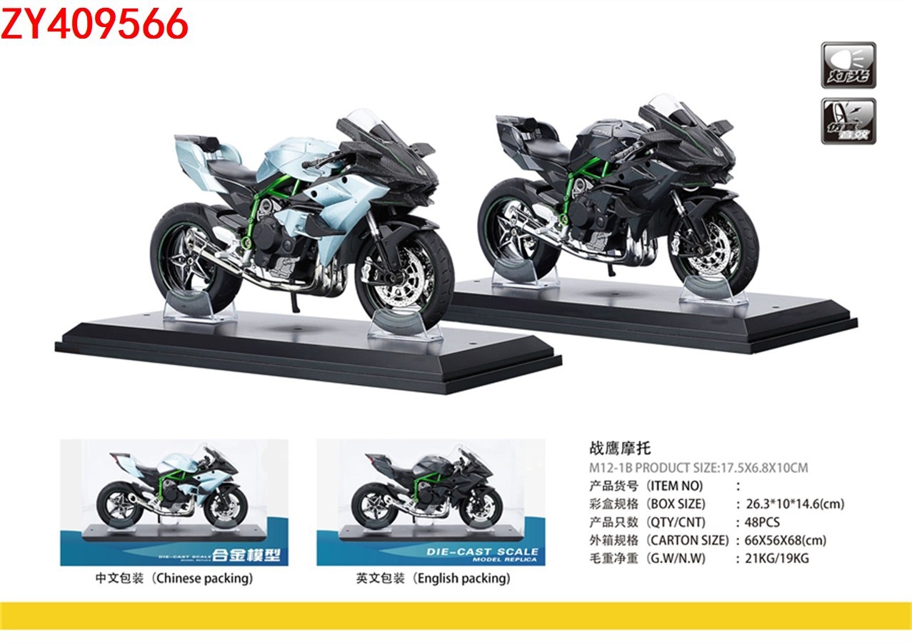 1:12合金回力摩托车战鹰摩托(带底座)声光带灯模型男孩收藏礼品