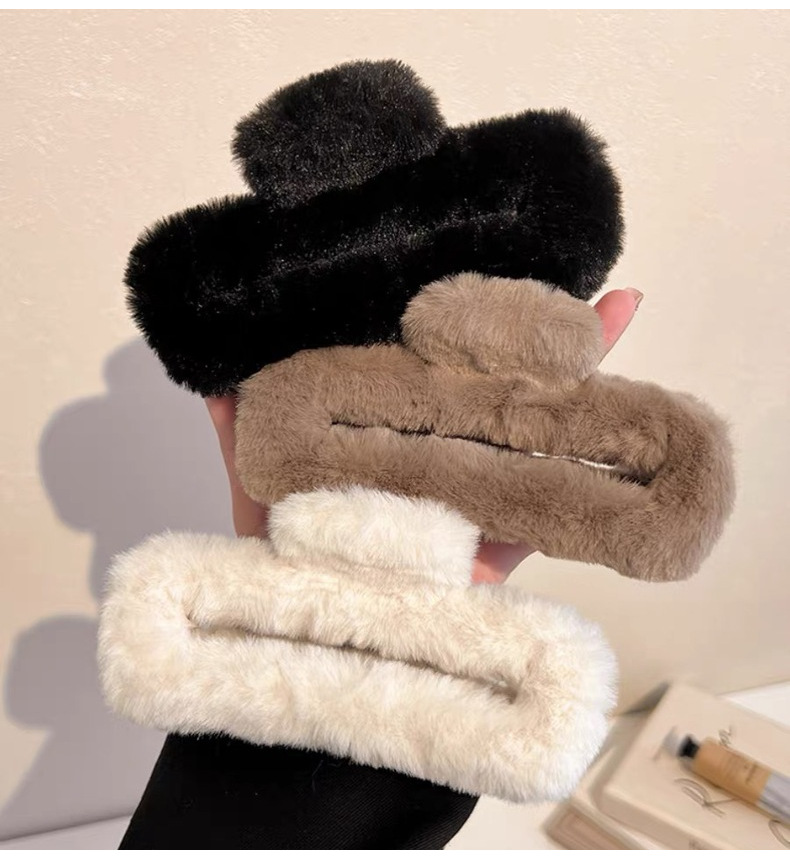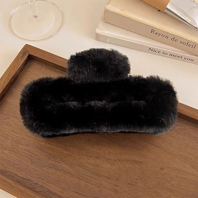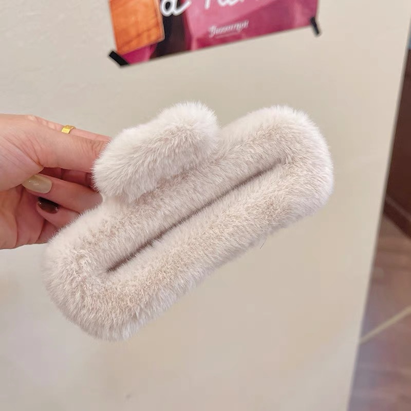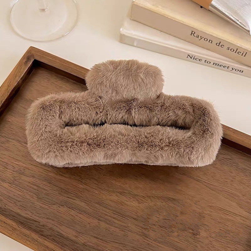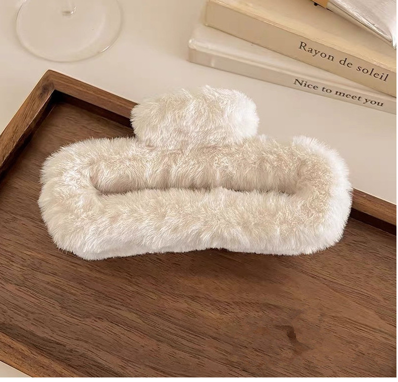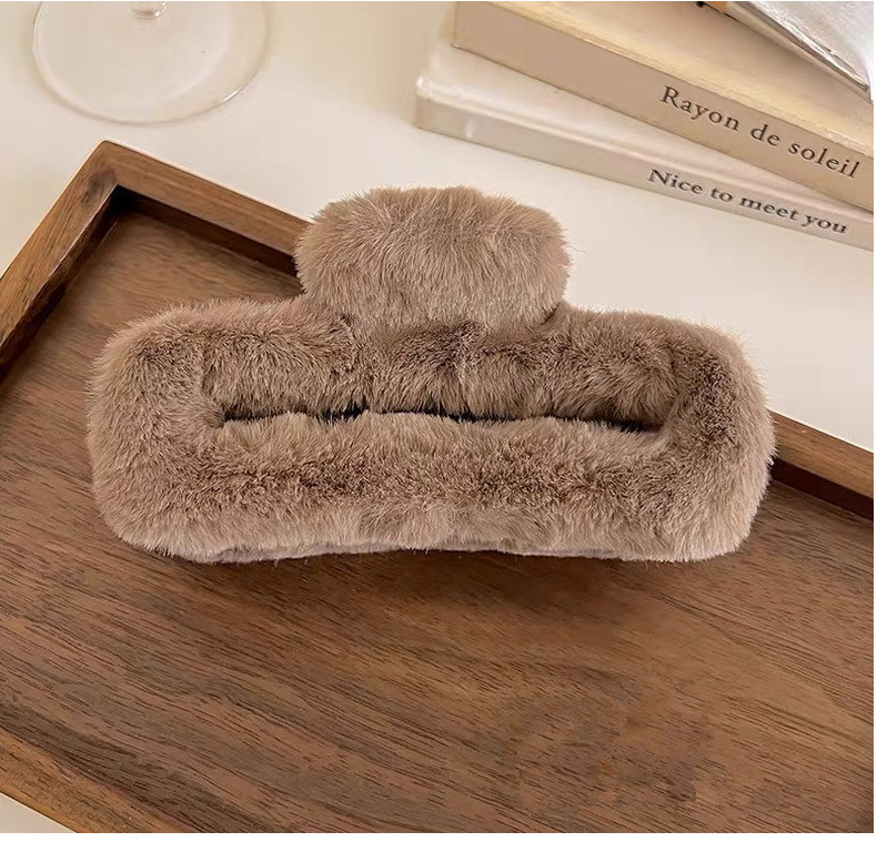 冠洋秋冬超大号毛绒抓夹女简约高级感奶咖色系盘发鲨鱼夹发夹头饰