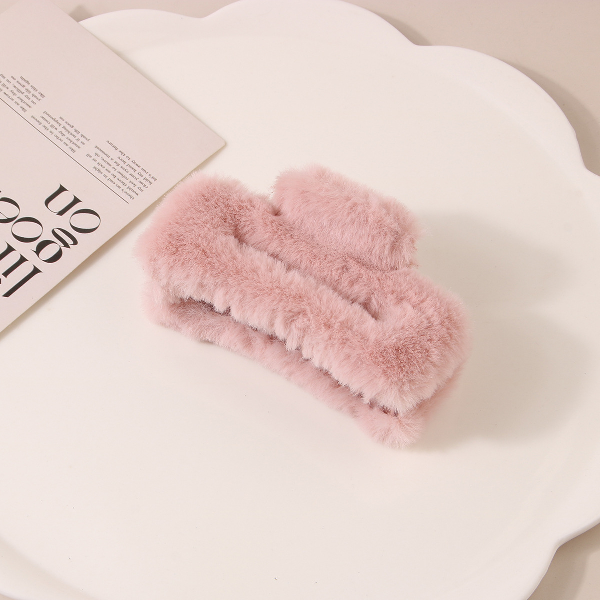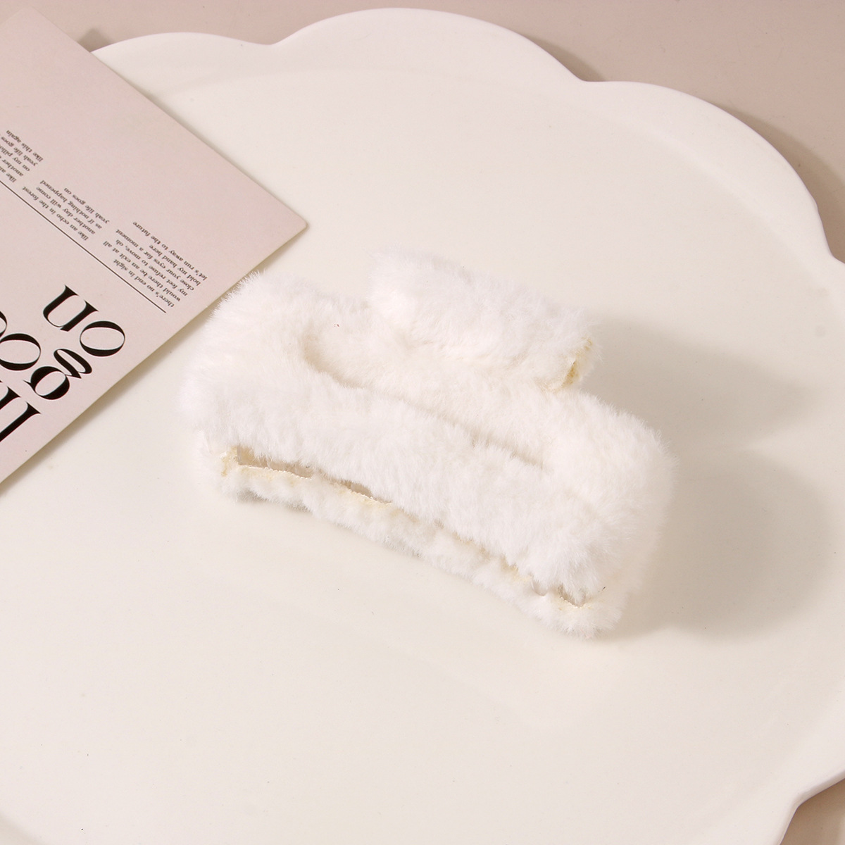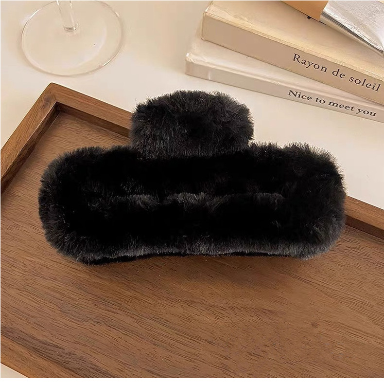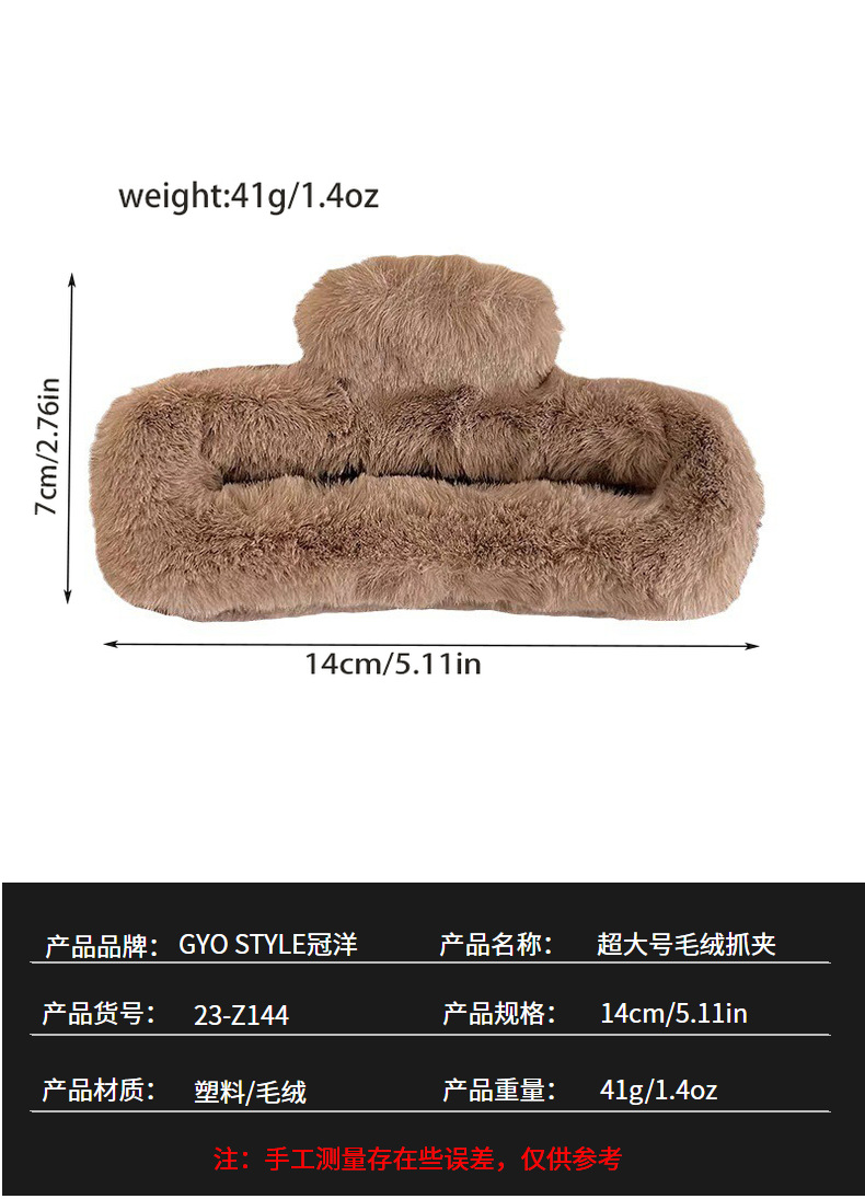冠洋秋冬超大号毛绒抓夹女简约高级感奶咖色系盘发鲨鱼夹发夹头饰