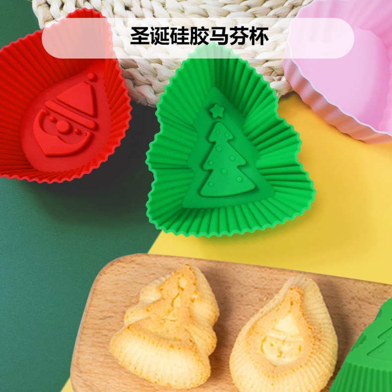 圣诞系列 硅胶圣诞马芬杯DIY圣诞老人爱心布丁果冻蛋糕模