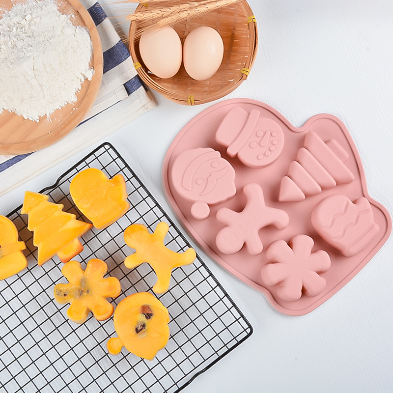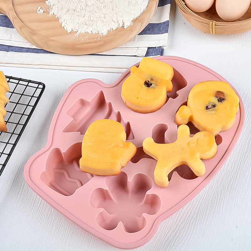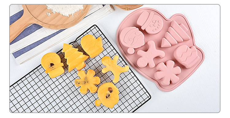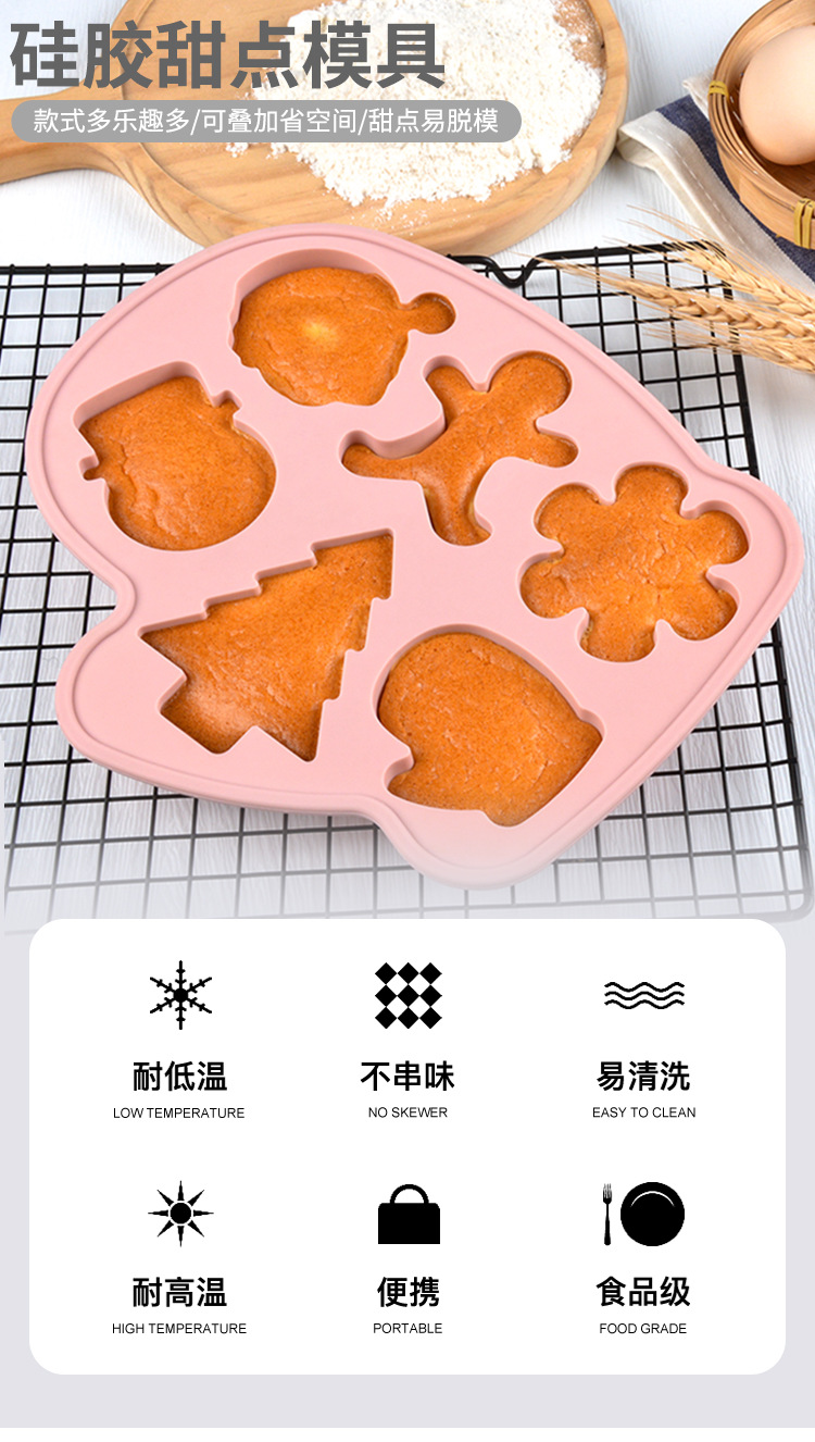 多模 圣诞 硅胶 6连雪人蛋糕模宝宝辅食模耐高温卡通蒸糕模