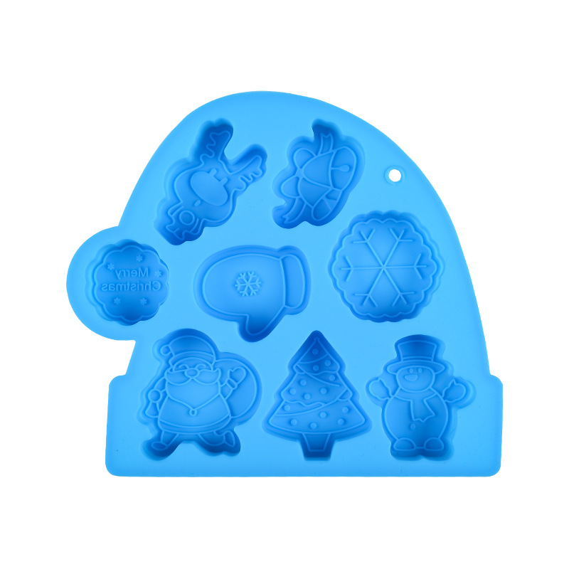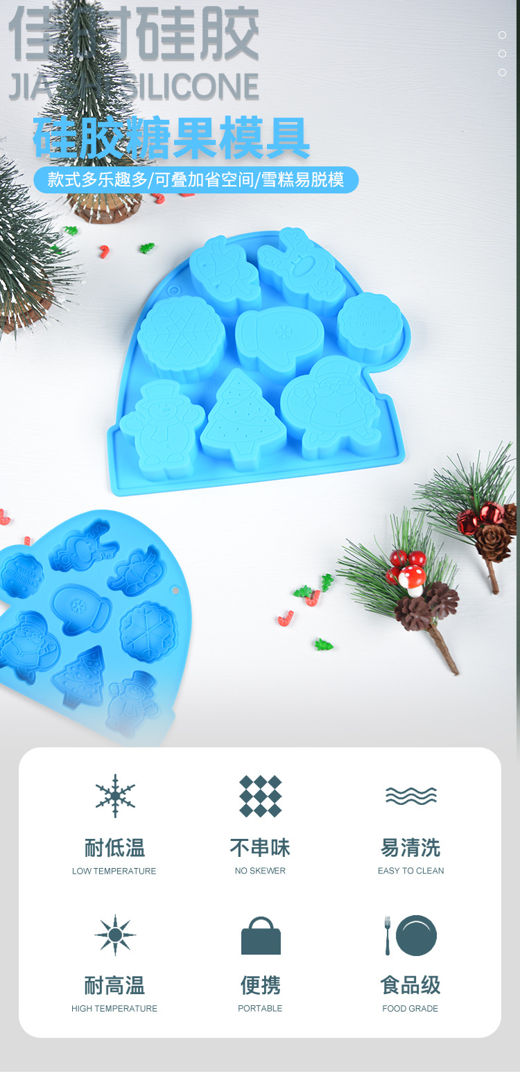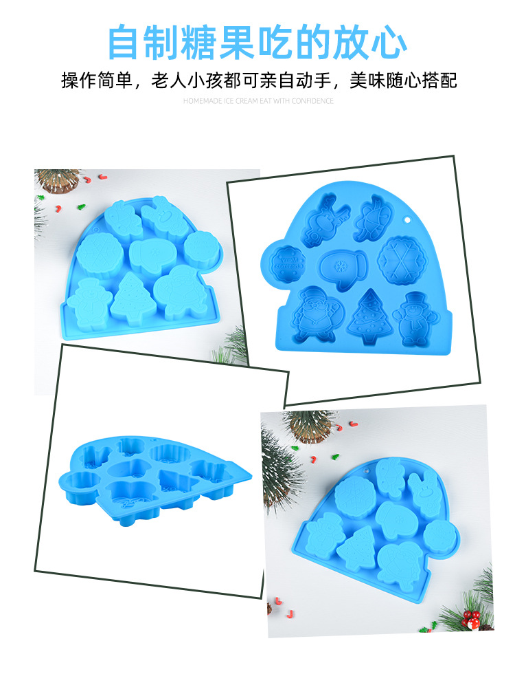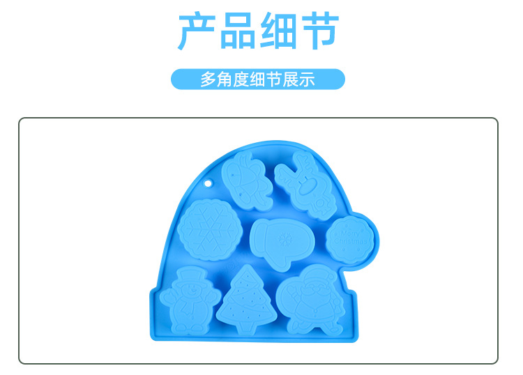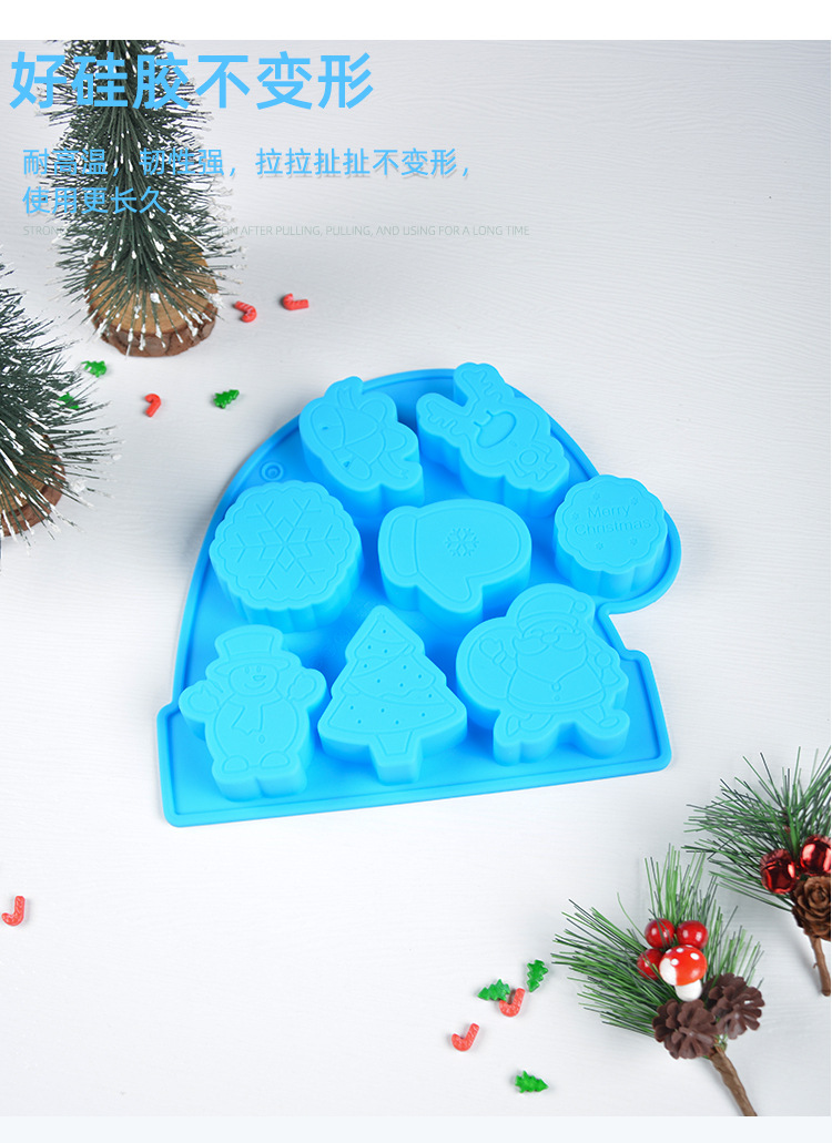 圣诞系列 硅胶8连圣诞老人钵仔糕模具 雪人雪花辅食模具米糕模