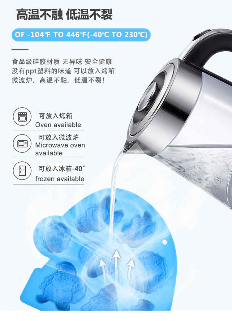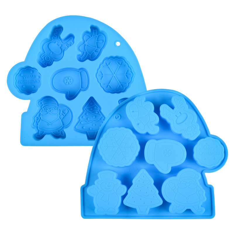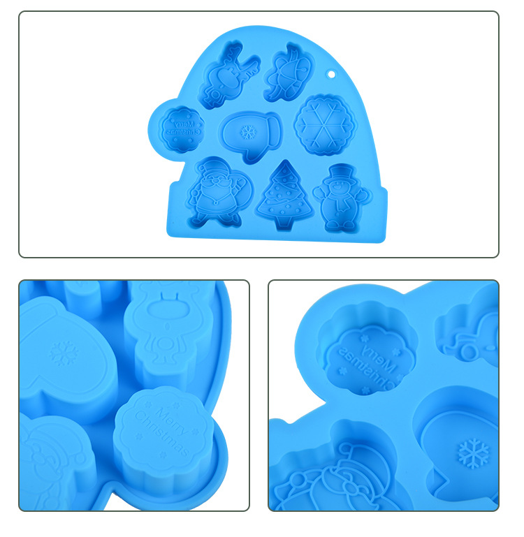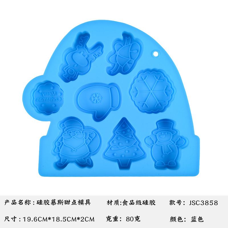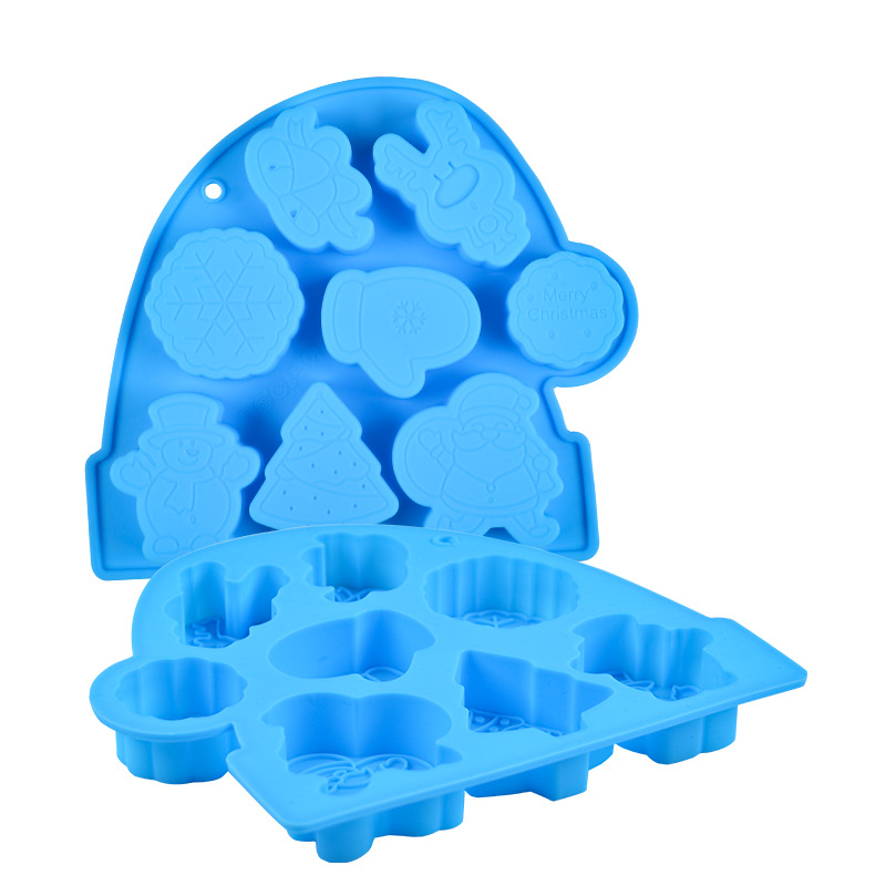 圣诞系列 硅胶8连圣诞老人钵仔糕模具 雪人雪花辅食模具米糕模
