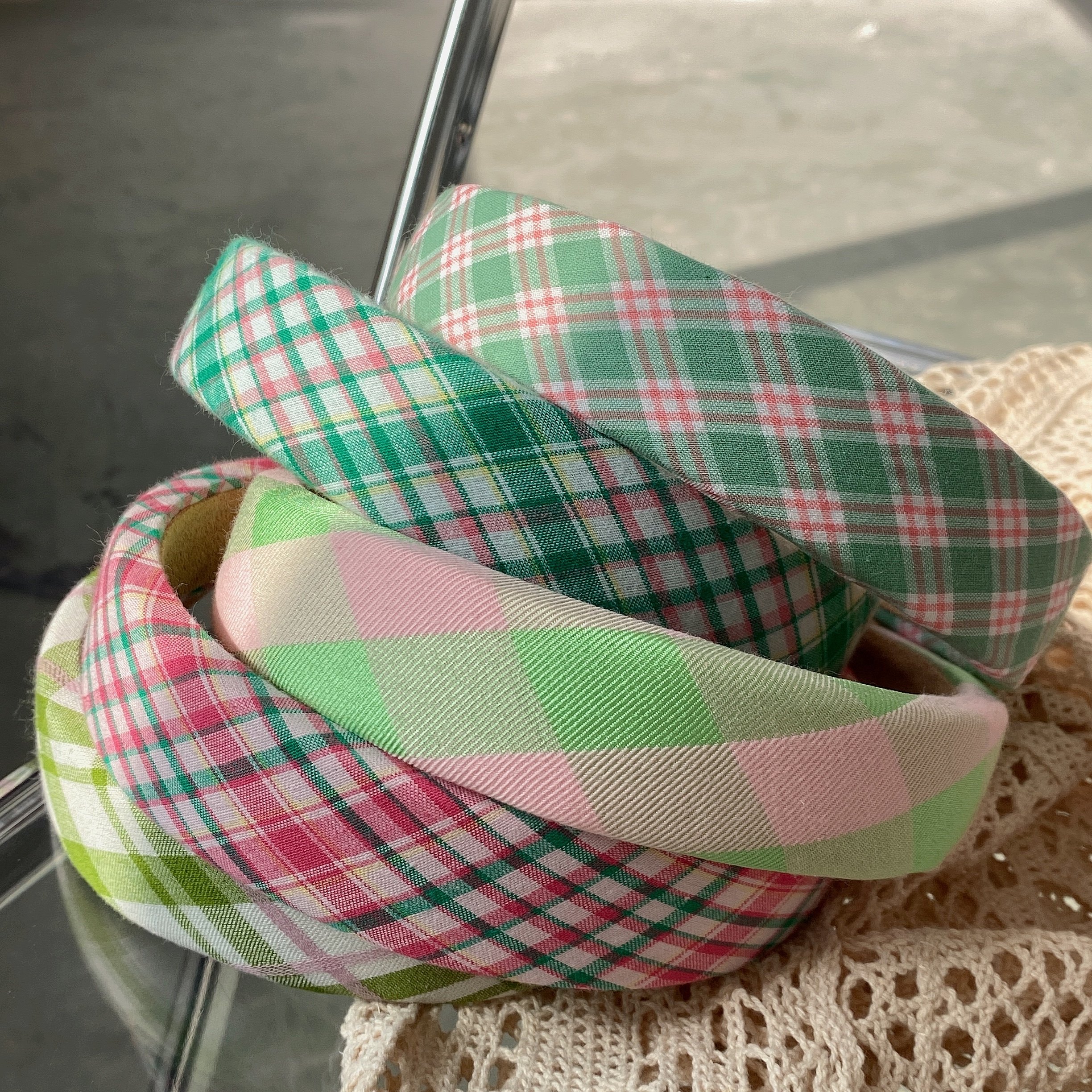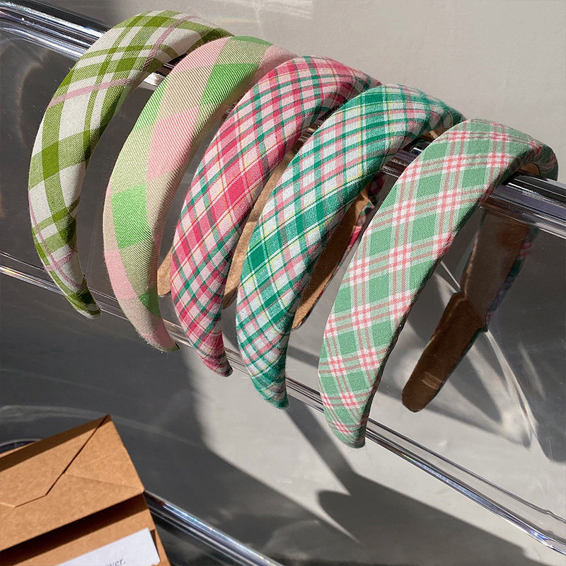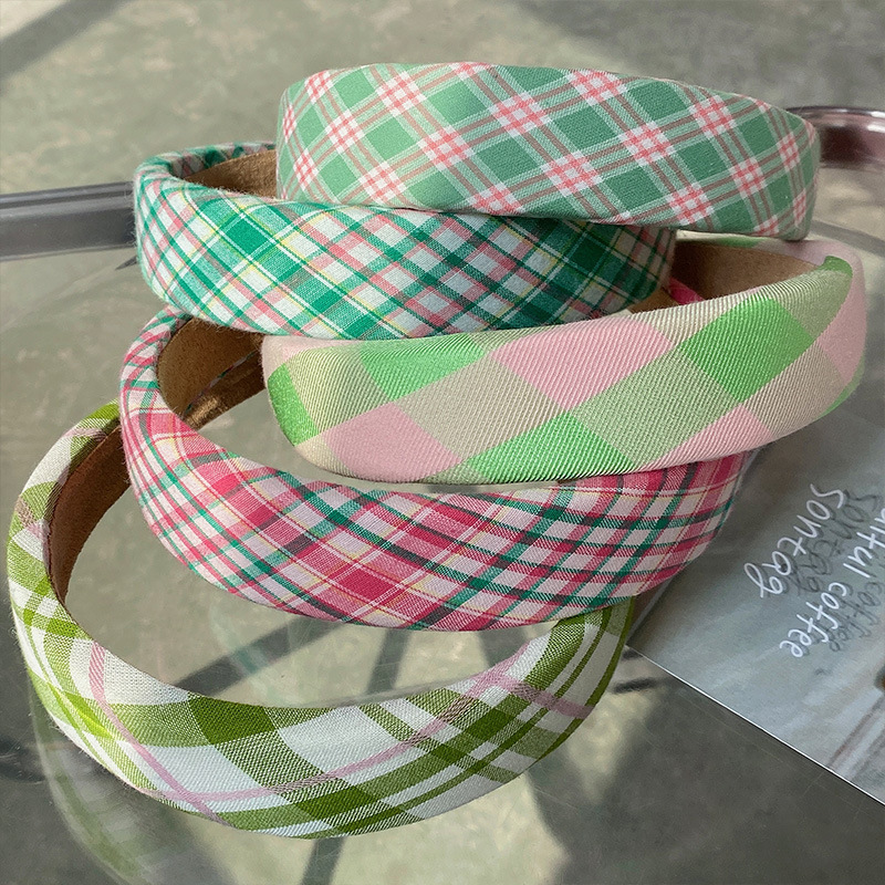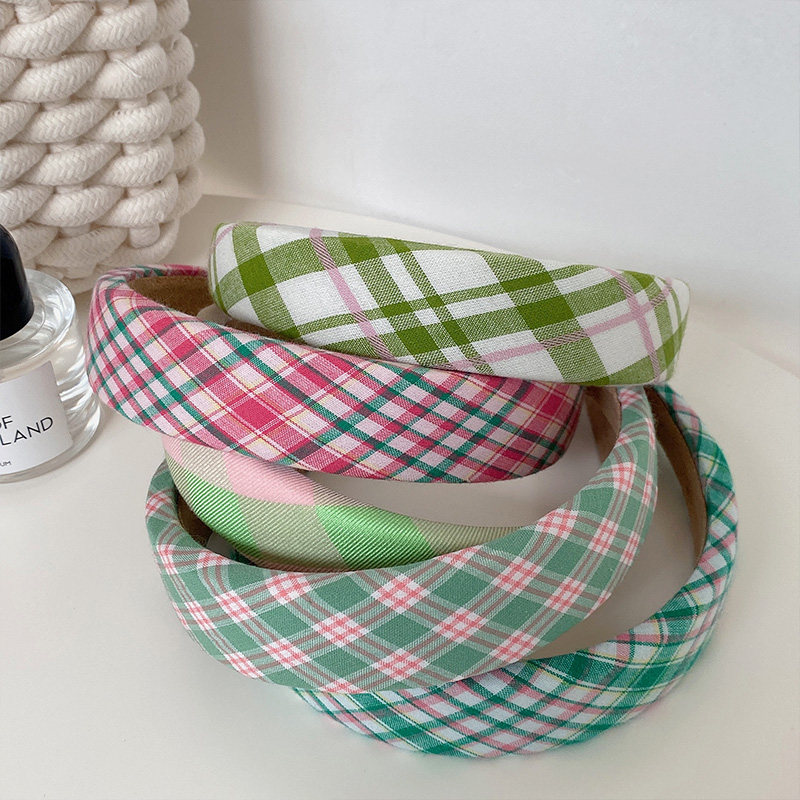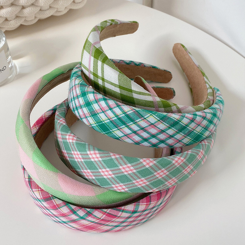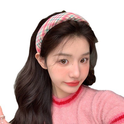 早春ins格纹发箍可爱少女宽边海绵头箍高颅顶外出百搭发饰网红