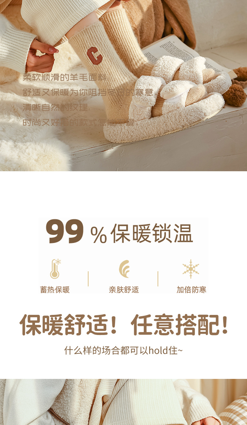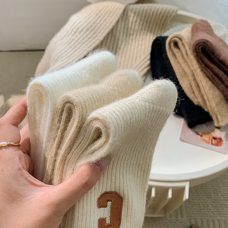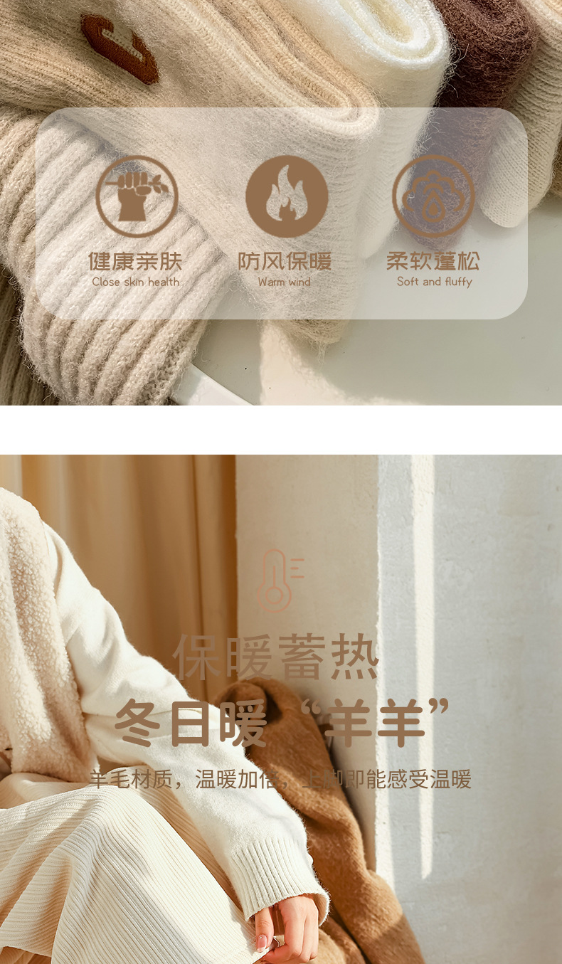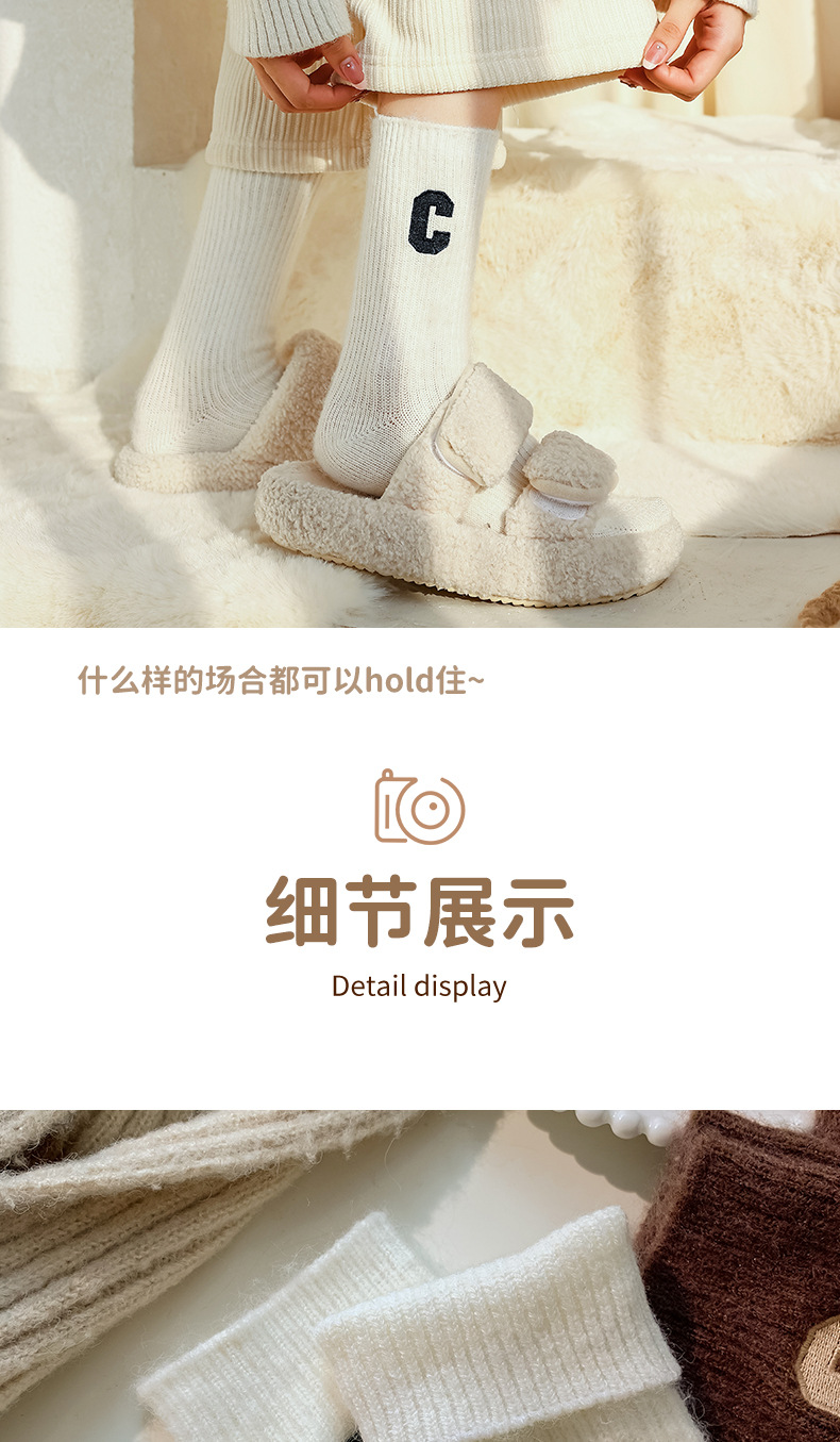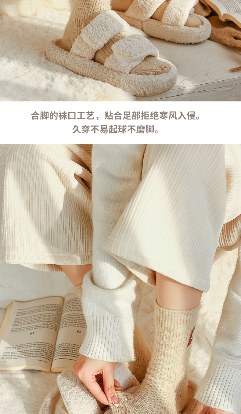 羊毛袜子女堆堆袜秋冬季加绒加厚保暖中筒袜外穿网红字母C长筒袜