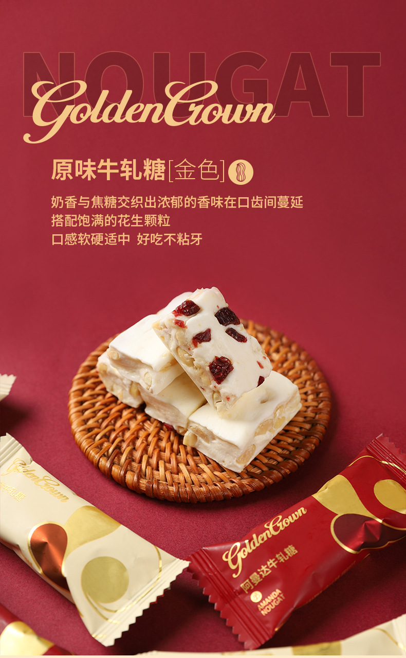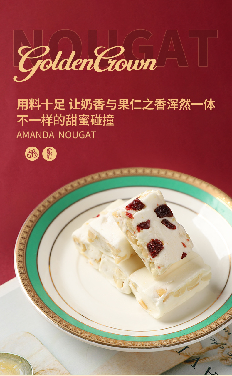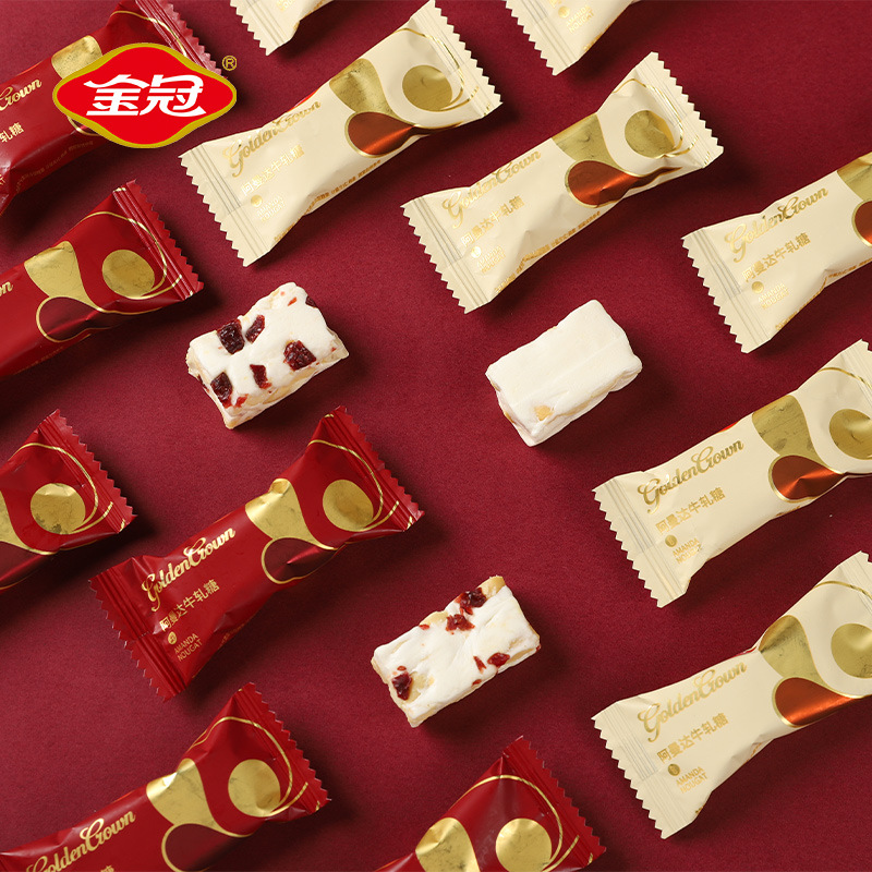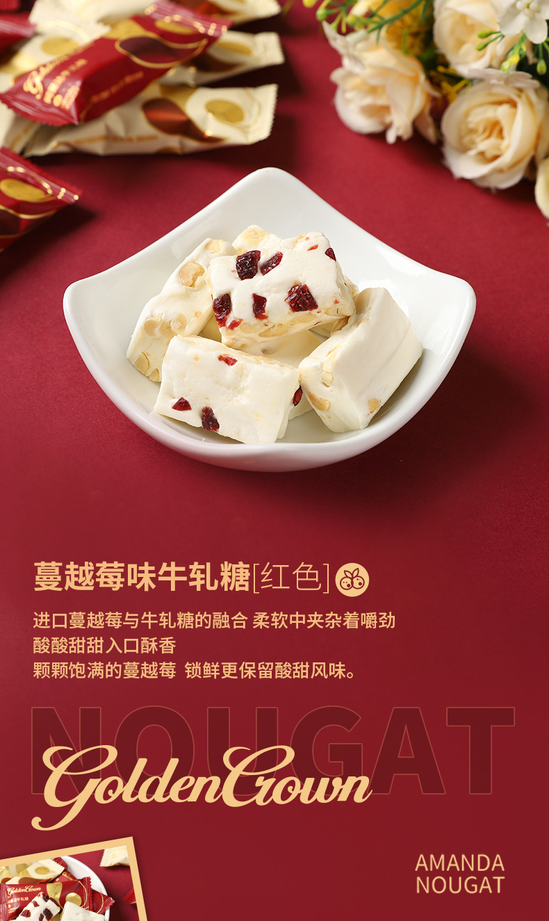 金冠蔓越莓牛轧糖儿童零食花生软糖订婚回礼结婚喜糖糖果大量批发