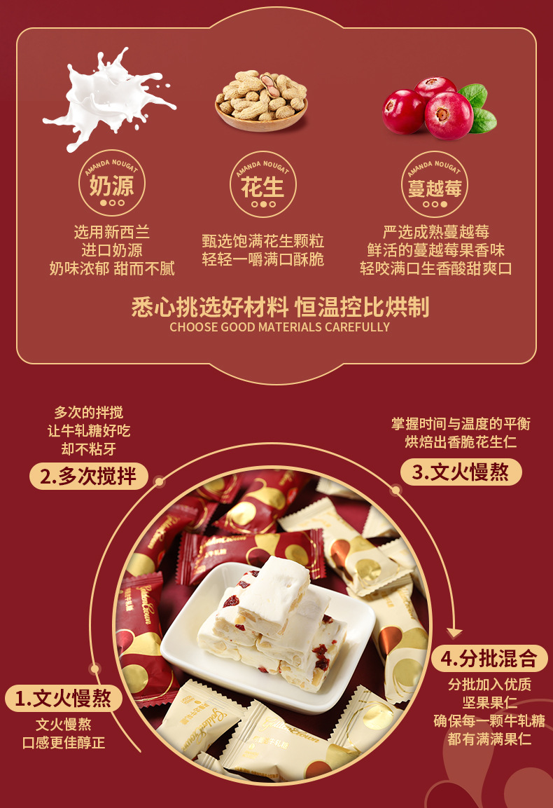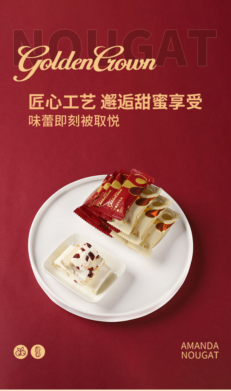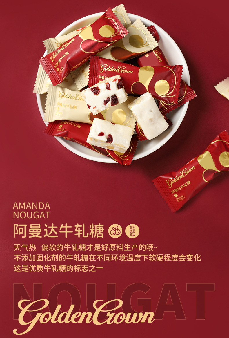 金冠蔓越莓牛轧糖儿童零食花生软糖订婚回礼结婚喜糖糖果大量批发