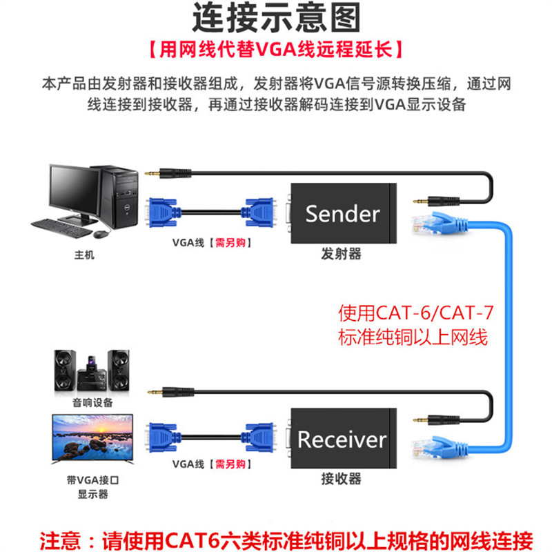 vga延长器100米60M单网线RJ45转VGA监控电视显示信号放大传输电源