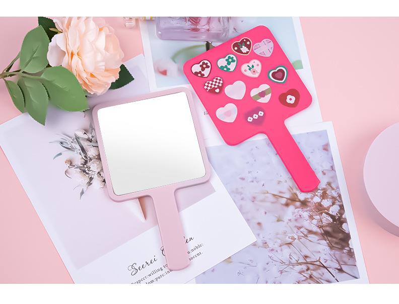 可爱卡通方形手持镜化妆镜女生随身便携补妆镜手柄镜塑料小镜子