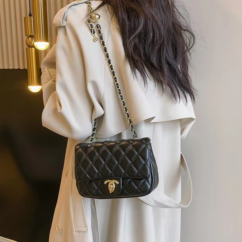 外贸新款香奶奶链条包高级感菱格方胖子金球斜挎包百搭批发代发